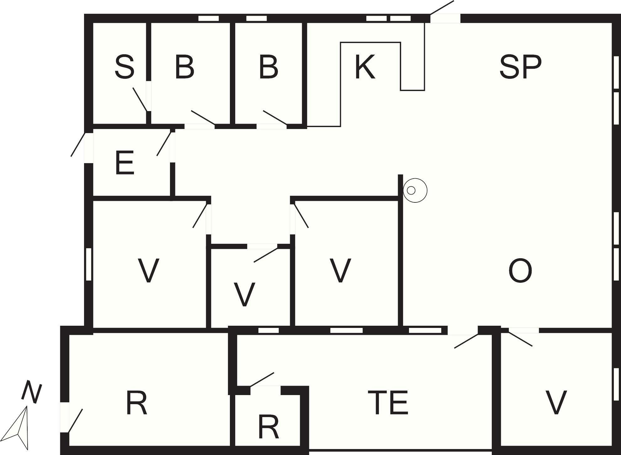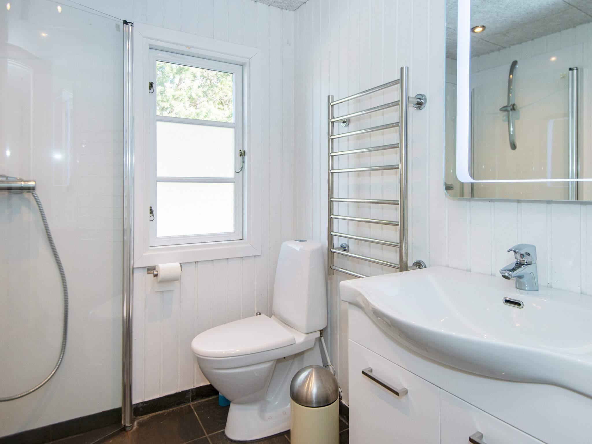 Foruden de to badeværelser, hvoraf det ene er med sauna, er der fire soveværelser, hvoraf de tre har dobbeltseng mens det sidste soverum er med en etageseng til to personer. Der er mulighed for opladning af elbil.