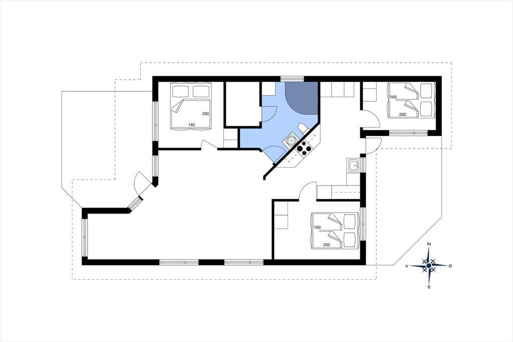 Atmosfæren er skøn inden døre i sommerhuset, der måler 95 m2 og er opført med loft til kip og lys træbeklædning på væggene. Store vinduer inviterer dagslyset indenfor i stuen og giver udsigt til den grønne naturgrund, og pillebrændeovnen står klar til at sprede hygge og varme på eventuelle kølige dage. Trænger I mest af alt til at slænge jer i sofaen, kan I tænde for fladskærms-tv’et eller finde en spændende bog frem. Og når I har tryllet noget lækker mad frem i det åbne køkken, kan I dække op ved spisebordet og gøre klar til en hyggelig aften. Den kan også bestå af wellness og total afslapning på husets store badeværelse, der byder på både spabad og sauna. Ligesom i stuen er der trægulv på de tre soveværelser, der alle har en pæn og enkel indretning.
