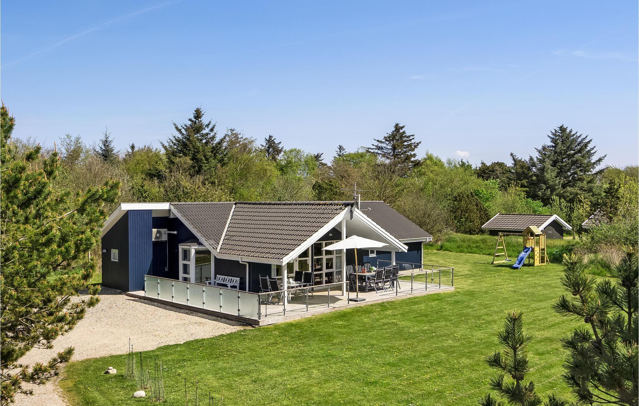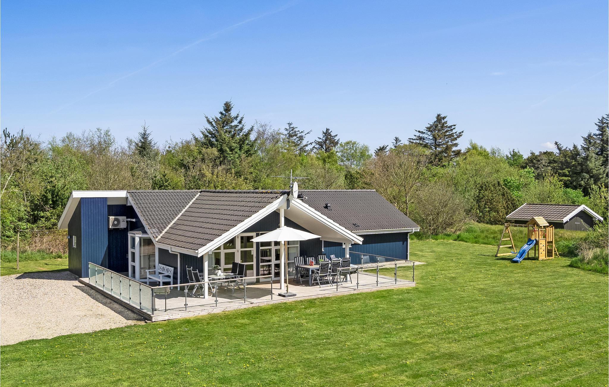 Dejligt sommerhus nær Søndervig med sauna, spa og stor, lukket grund til afslapning og leg.