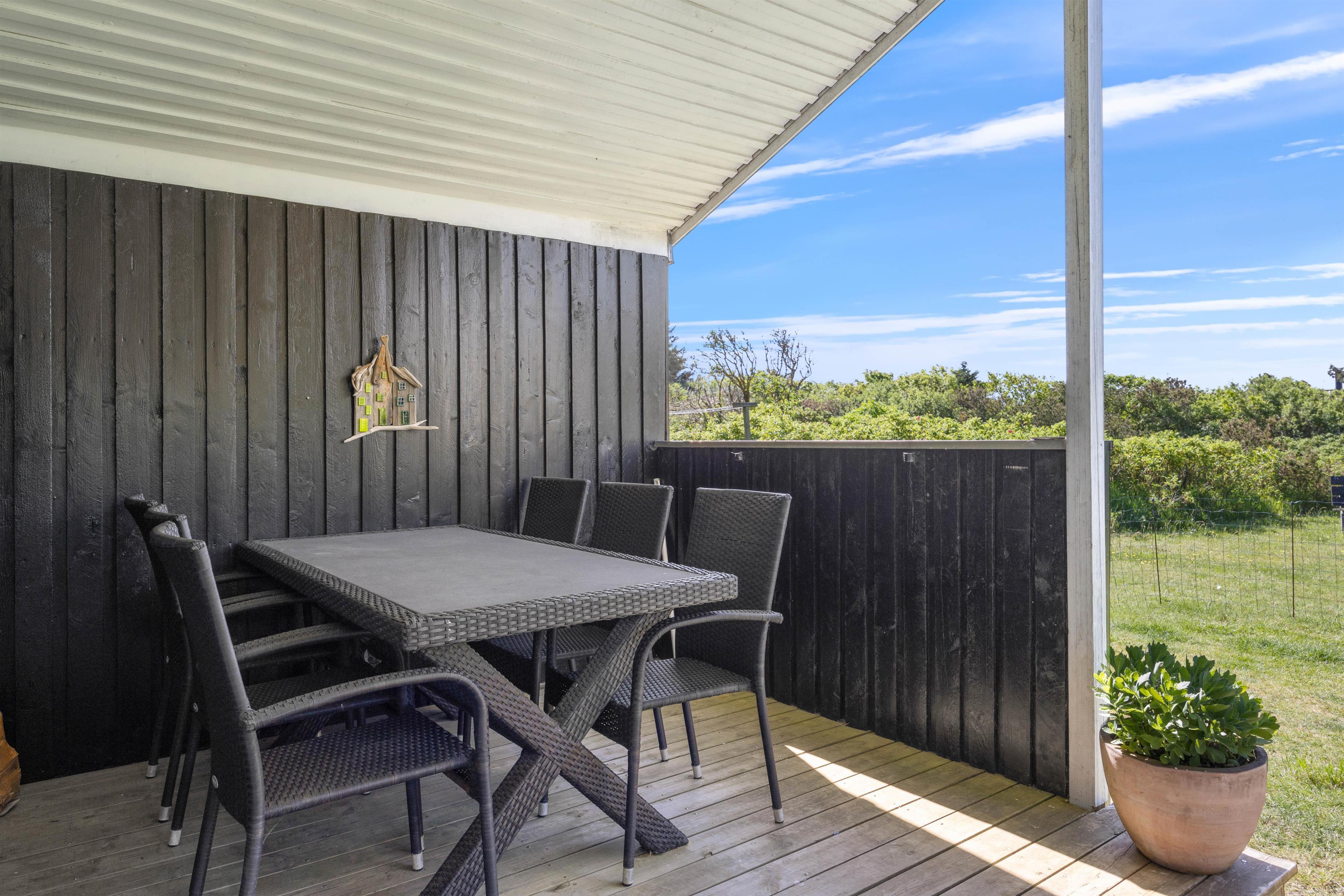Omkring feriehuset har er der flere dejlige terrasser, så du kan sidde ude og nyde den friske luft og solen, så snart vejret tillader det. Den lukkede terrasse er især velegnet til familier med småbørn og/eller hund. Den overdækkede terrasse er rigtig god til hyggelige grillaftener, hvor det danske vejr måske er lidt ustadigt.