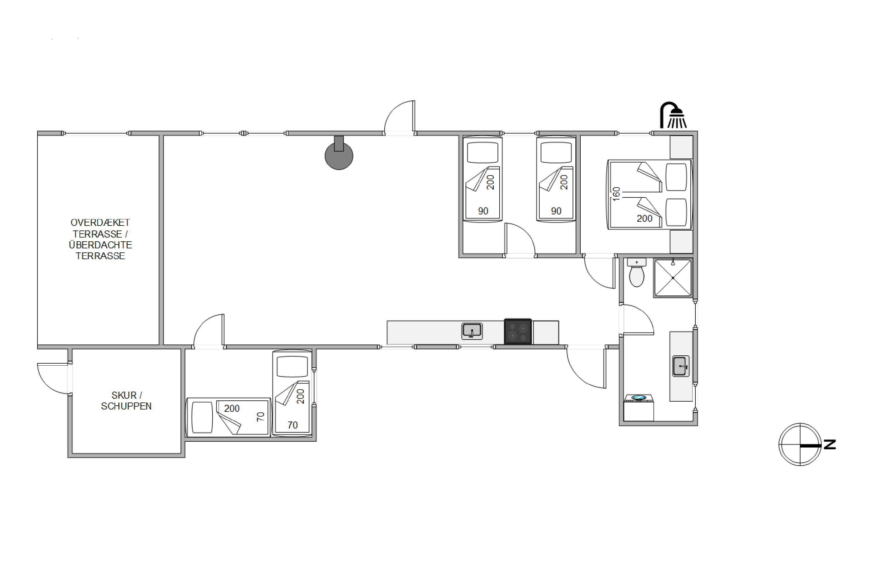 Ved feriehusets udearealerne finder I derudover også en udebruser. Denne udendørs bruser kan I benytte jer af i perioden fra april til november.