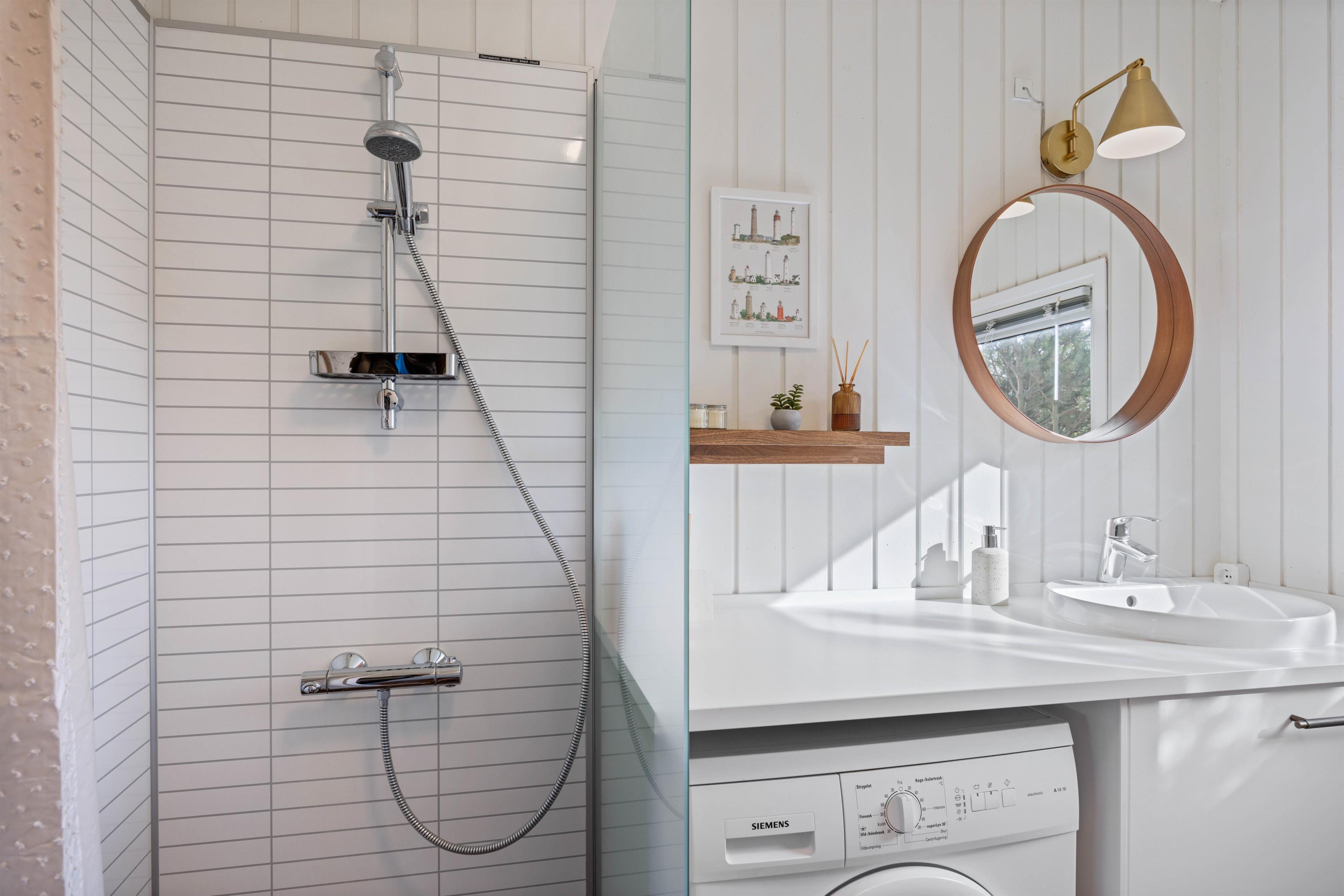 I feriehuset er der også installeret en energibesparende varmepumpe, der giver en billigere opvarmning af feriehuset. Den kan desuden også bruges som aircondition på de varme dage.