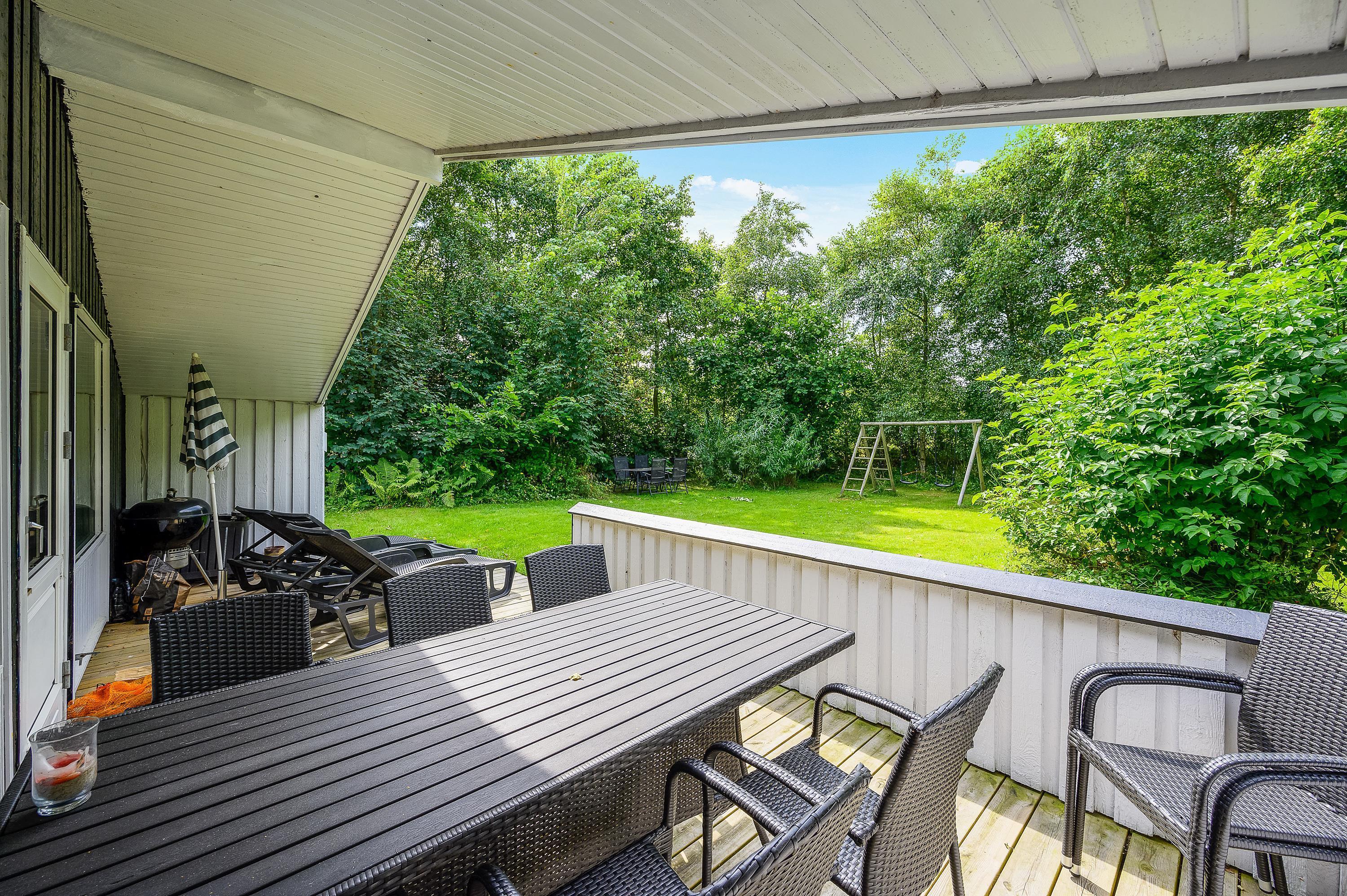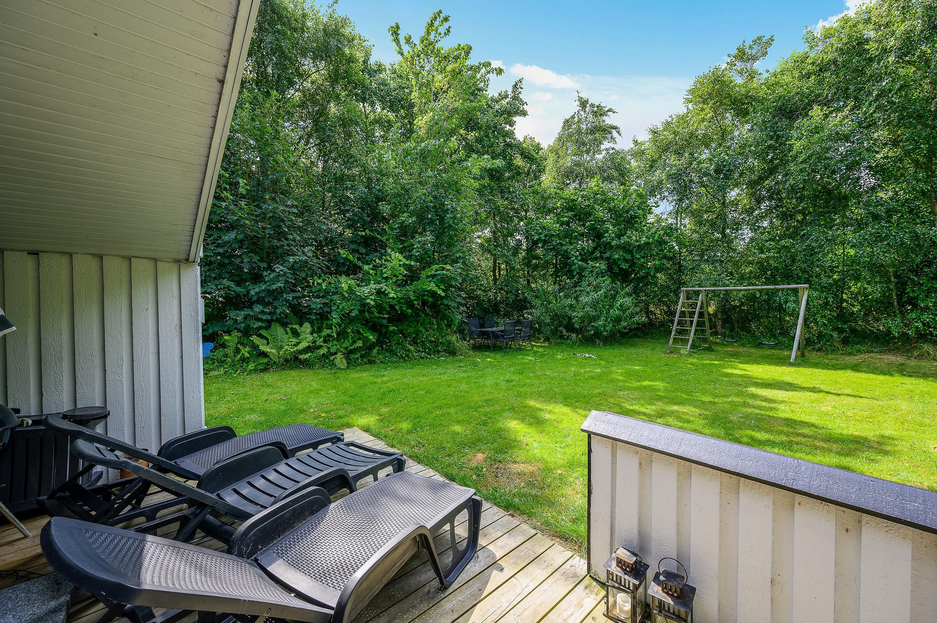 På den store græsplæne, der omgiver huset, er der masser af plads til leg og boldspil for børnene og hundene. Imens kan I læne jer godt tilbage i liggestolene og nyde solens stråler. Hele grunden er indrammet af træer, så I har masser af privatliv, mens I soler jer.