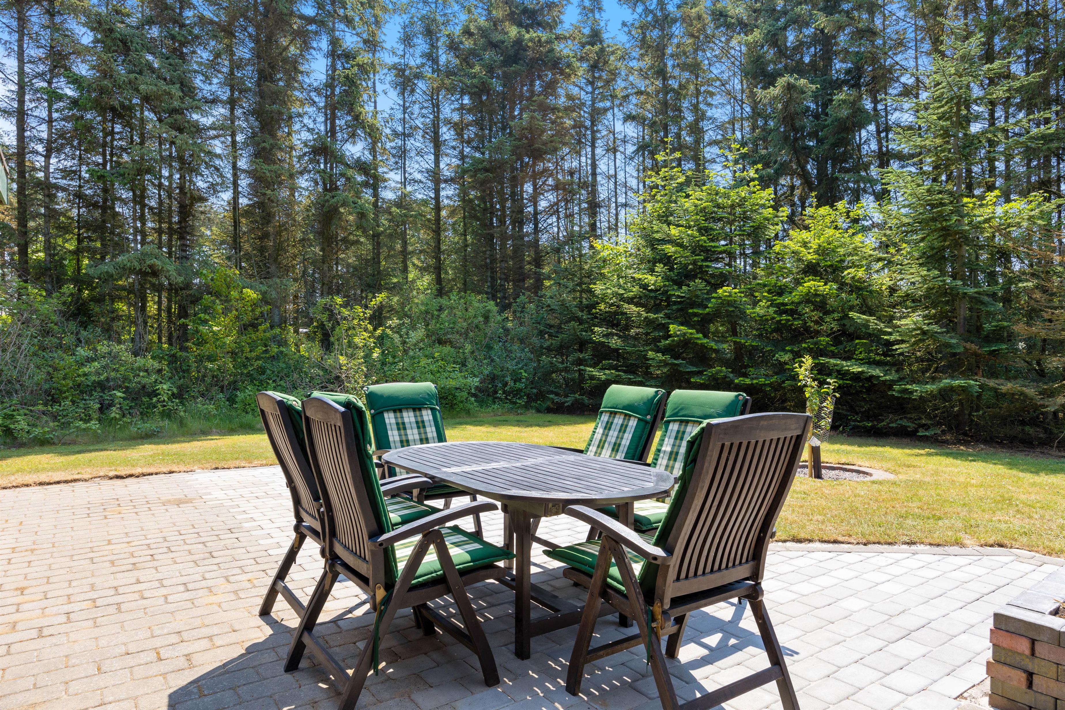 Feriehuset på Bøgealle 1 ligger på en stor grund omgivet af træer, hvilket helt sikkert vil være et højdepunkt for hele familiens børn. Her kan de små og mellemstore børn udfolde sig efter hjertets lyst og lade fantasien få frit løb. Især sandkasserne og gyngen vil være et hit. Mens dine børn og din hund boltrer sig med leg på græsplænen, kan I sætte jer til rette i havemøblerne på den åbne og afskærmede terrasse og derfra nyde naturen. Som afslutning på en spændende dag ved Vesterhavet kan I nyde et lækkert måltid fra sommerhusets grill.