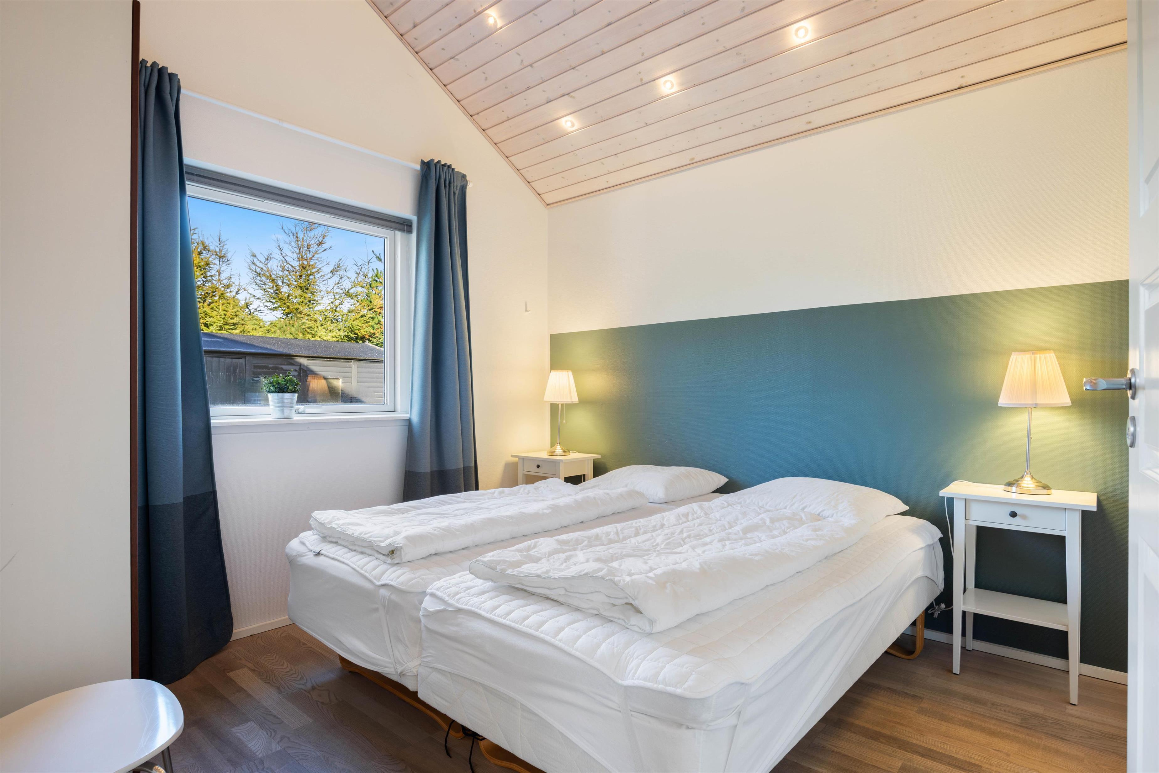 Feriehuset byder på fire rummelige soveværelser med dobbeltsenge, ideelt til familier eller grupper på op til otte personer. Med to moderne badeværelser, begge med brusenicher og behagelig gulvvarme, får alle gæster optimale rammer for komfort og velvære under opholdet.
