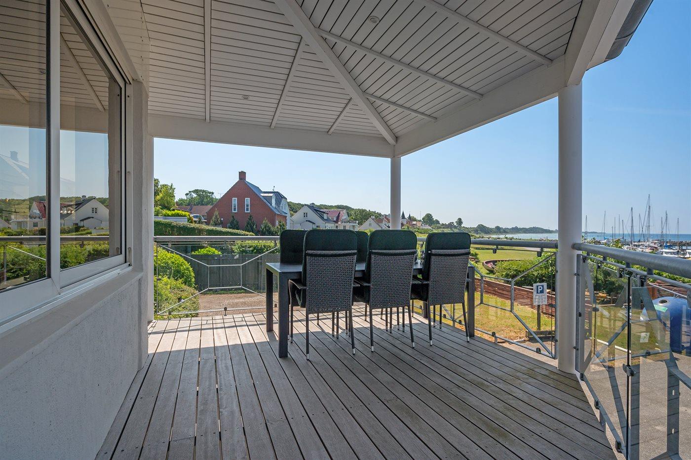 Stor og lækker ferielejlighed med fantastisk havudsigt ved marinaen i Lohals.