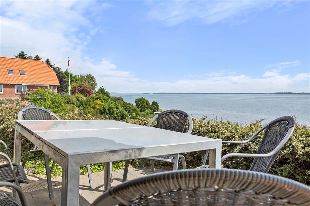Dette lyse og velholdte sommerhus ligger højt i kystlandskabet lige ud til Lyby Strand. Derfor bliver I forkælet med den flotteste panoramaudsigt over Limfjorden fra både stuen og terrassen, og selv på to af soveværelserne kan I vågne op til det smukke syn af blå bølger og høj himmel.