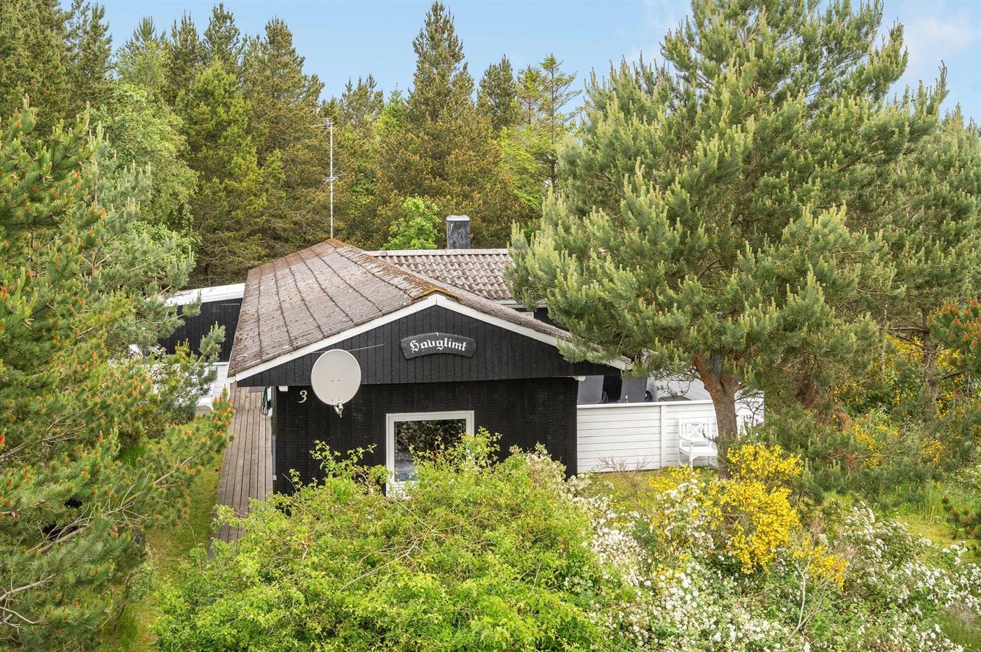Hyggeligt sommerhus beliggende tilbagetrukket på en lukket og ugenert grund i rolige omgivelser tæt ved dejlig, børnevenlig sandstrand.