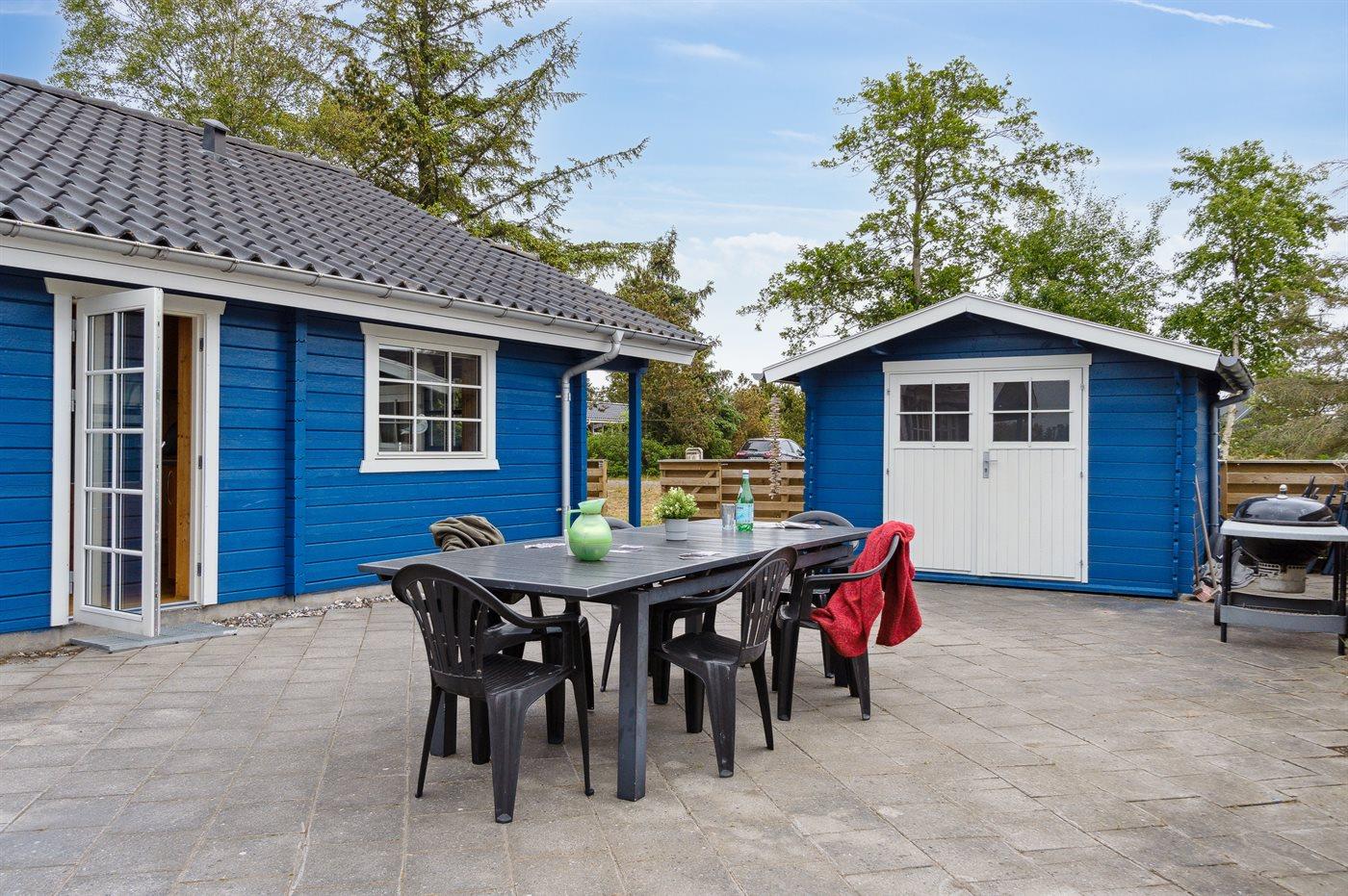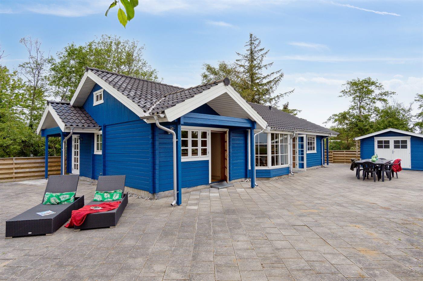Ferieboligen er beliggende på en 1200 m² stor naturgrund. Der er 175 m til havet. Nærmeste forretning er beliggende i en afstand af 10500 m. Til ferieboligen hører 100 m² terrasseareal. Gynge. Sandkasse. Fodboldmål. Parkering ved ferieboligen.