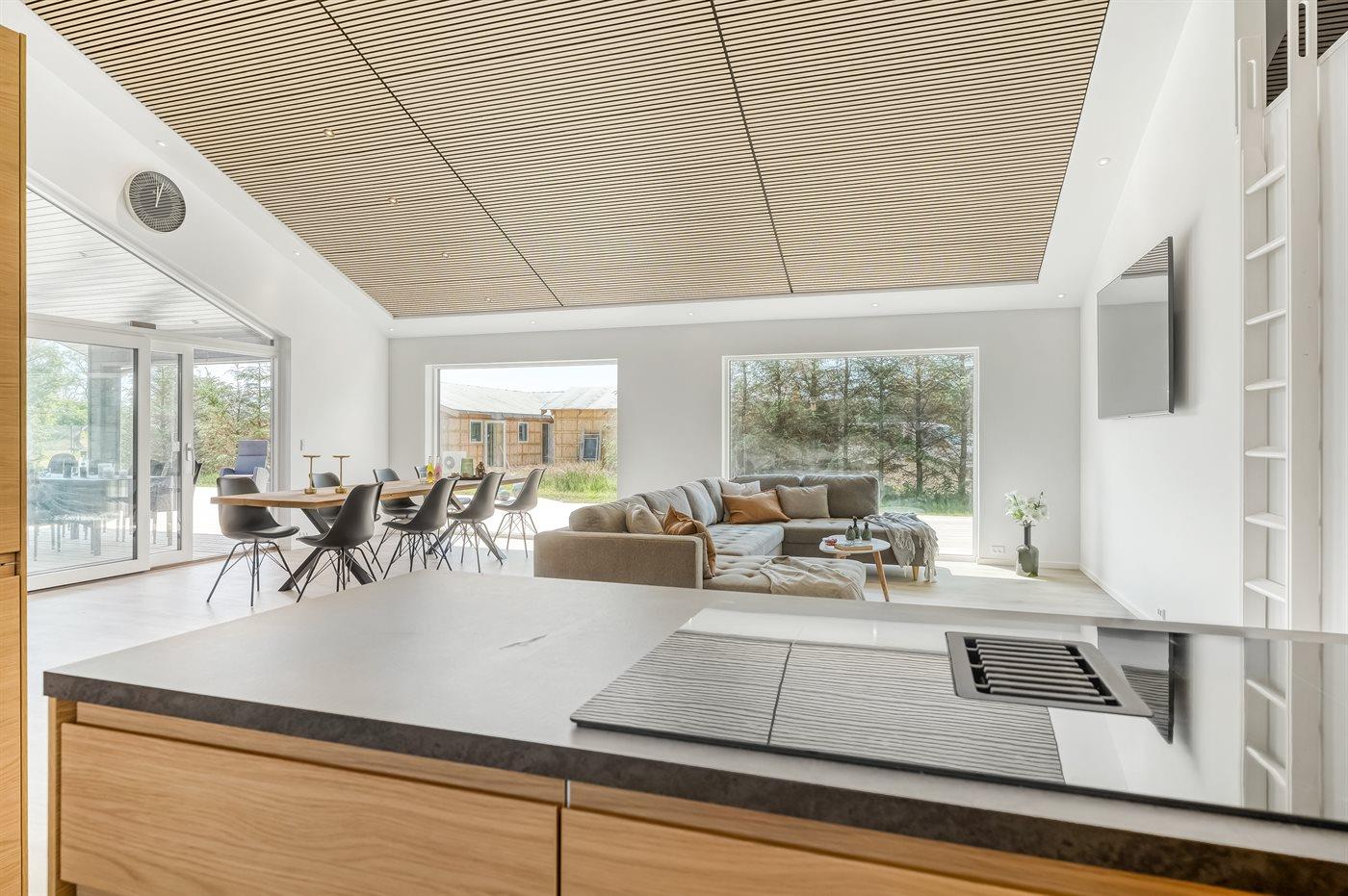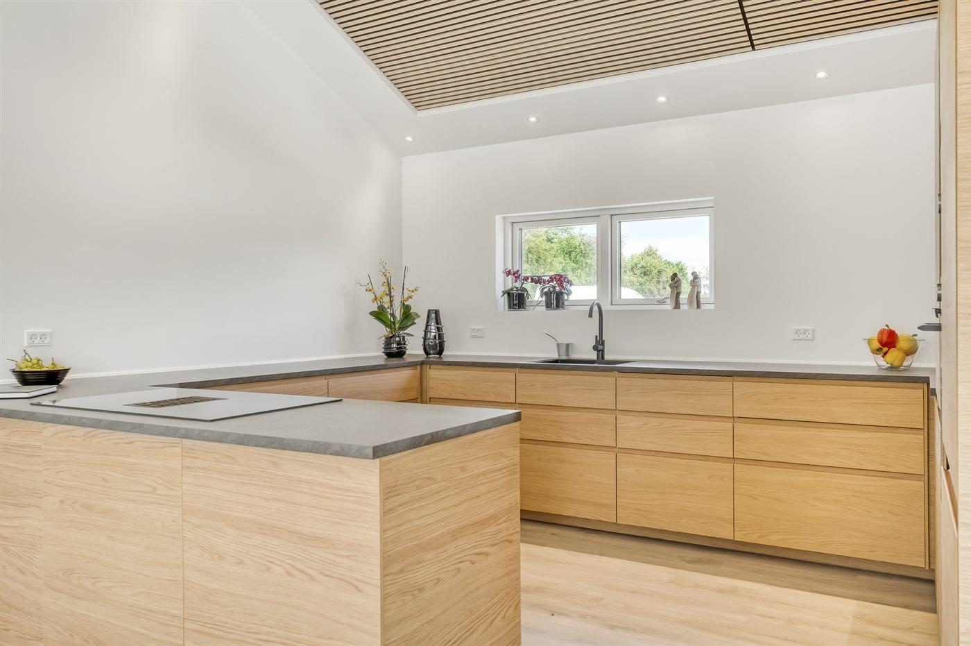 Køkkenet er udstyret med 1 køleskab. Der er 4 induktionskogeplader, varmluftovn, mikrobølgeovn samt opvaskemaskine.