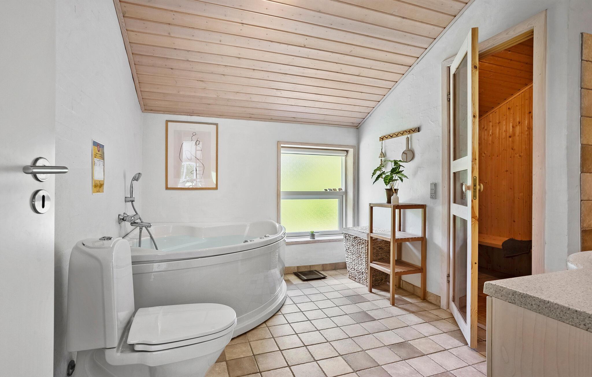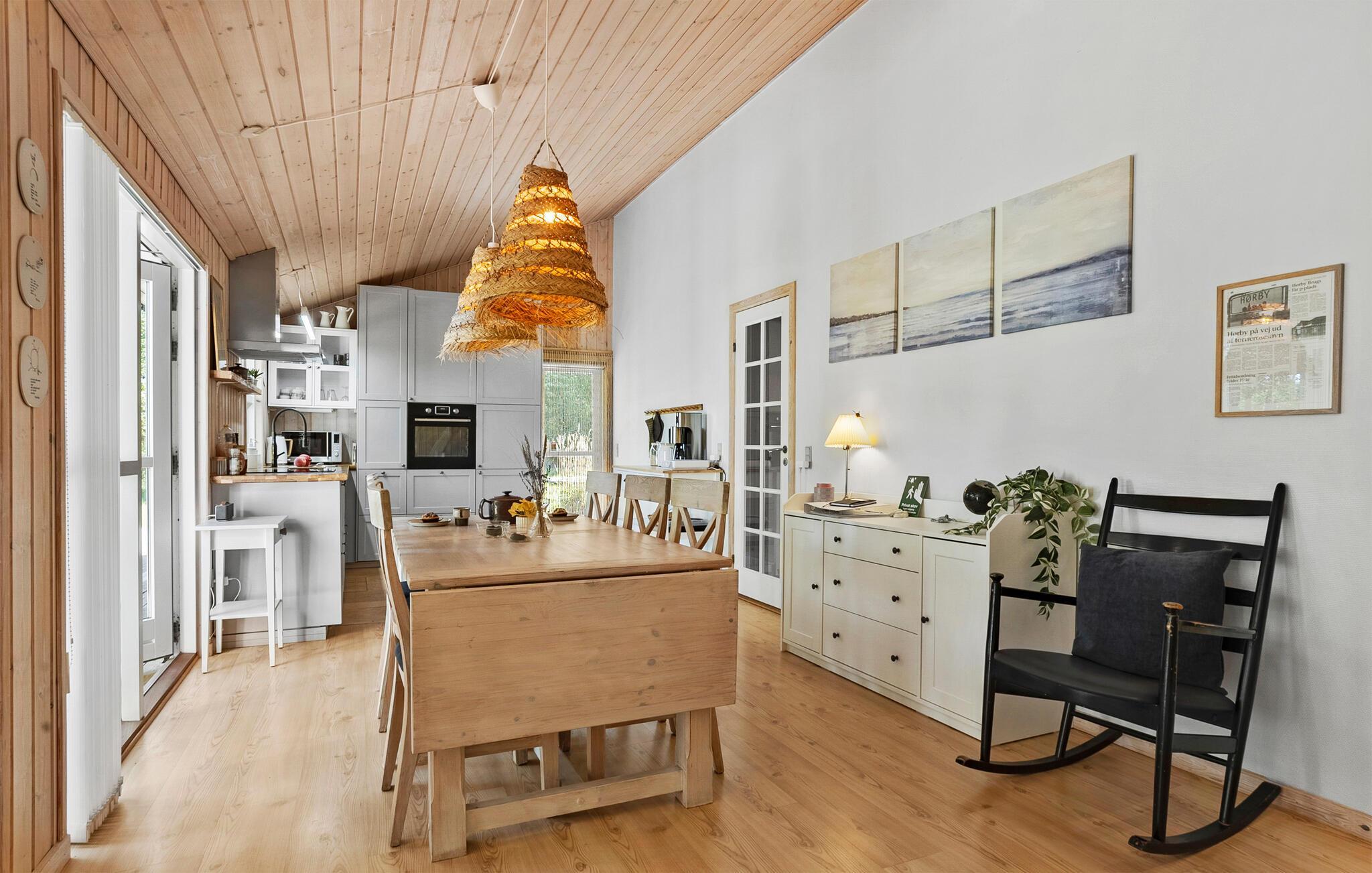 Nyd freden og roen i jeres hyggelige feriehus, der ligger kun få skridt fra en fin sandstrand. Beliggende i fredfyldte omgivelser med smukke træer, inviterer det jer til at sætte tempoet ned og slappe af. De klassiske møbler skaber en varm atmosfære, hvor I straks vil føle jer hjemme. Tilbered dagens måltider i det smukt udstyrede køkken og tilbring hyggelige aftener i opholdsstuen, hvad enten det er med en film, en bog eller ved den varme brændeovn. Saunaen og spabadet giver ekstra afslapning i slutningen af ??dagen.