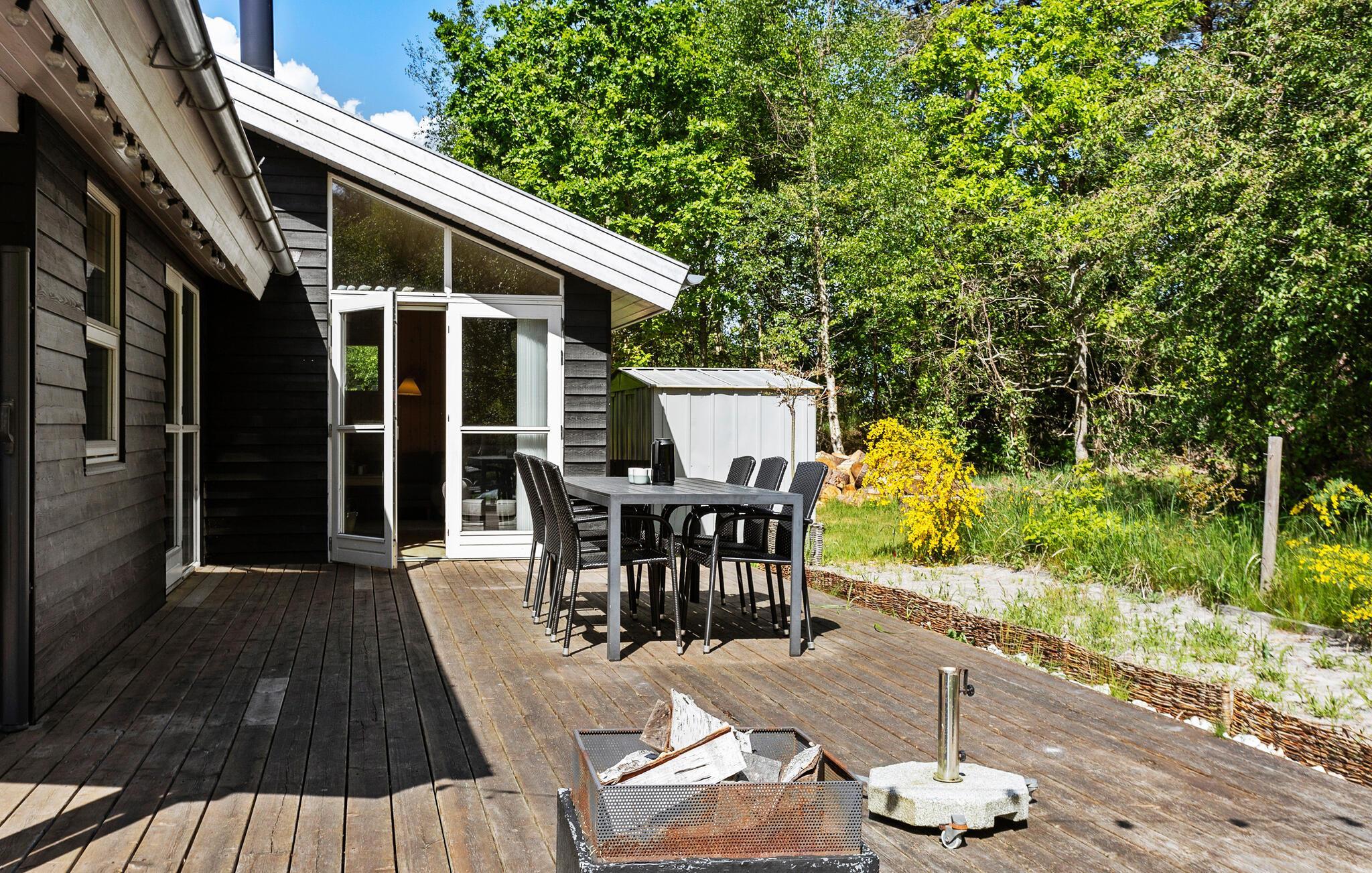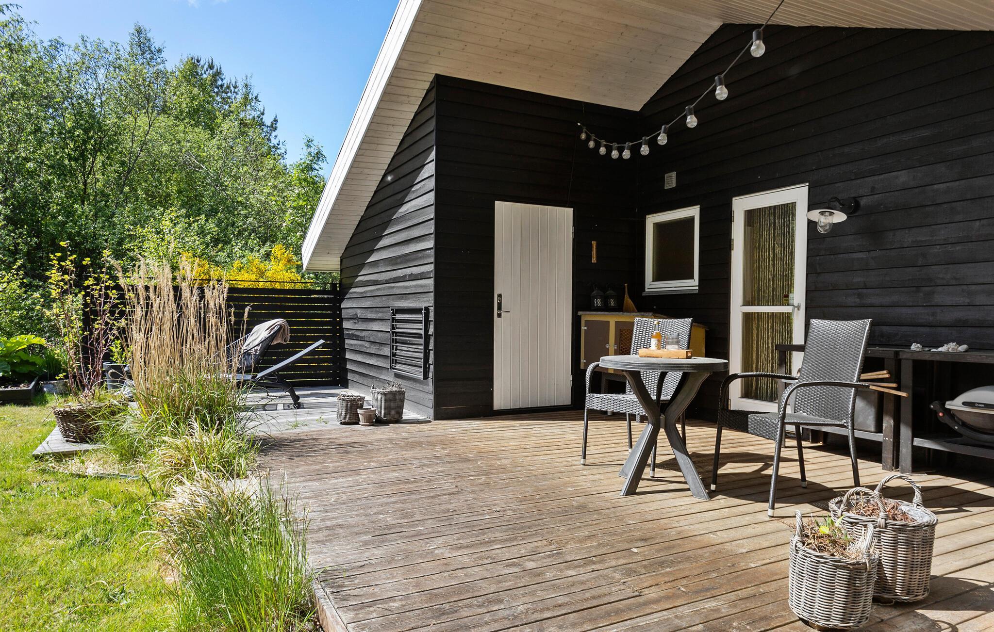Hyggeligt feriehus nær sandstrand i Lyngså med sauna, spabad og stor have for afslapning og aktiviteter.