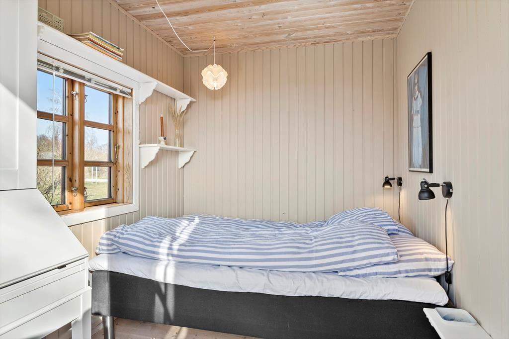 I sommerhuset er to soveværelser med dobbeltsenge og god opbevaringsplads. Værelserne er ikke store, men de er hyggelige og har plads til 4 gæster, der ønsker det småt og godt.