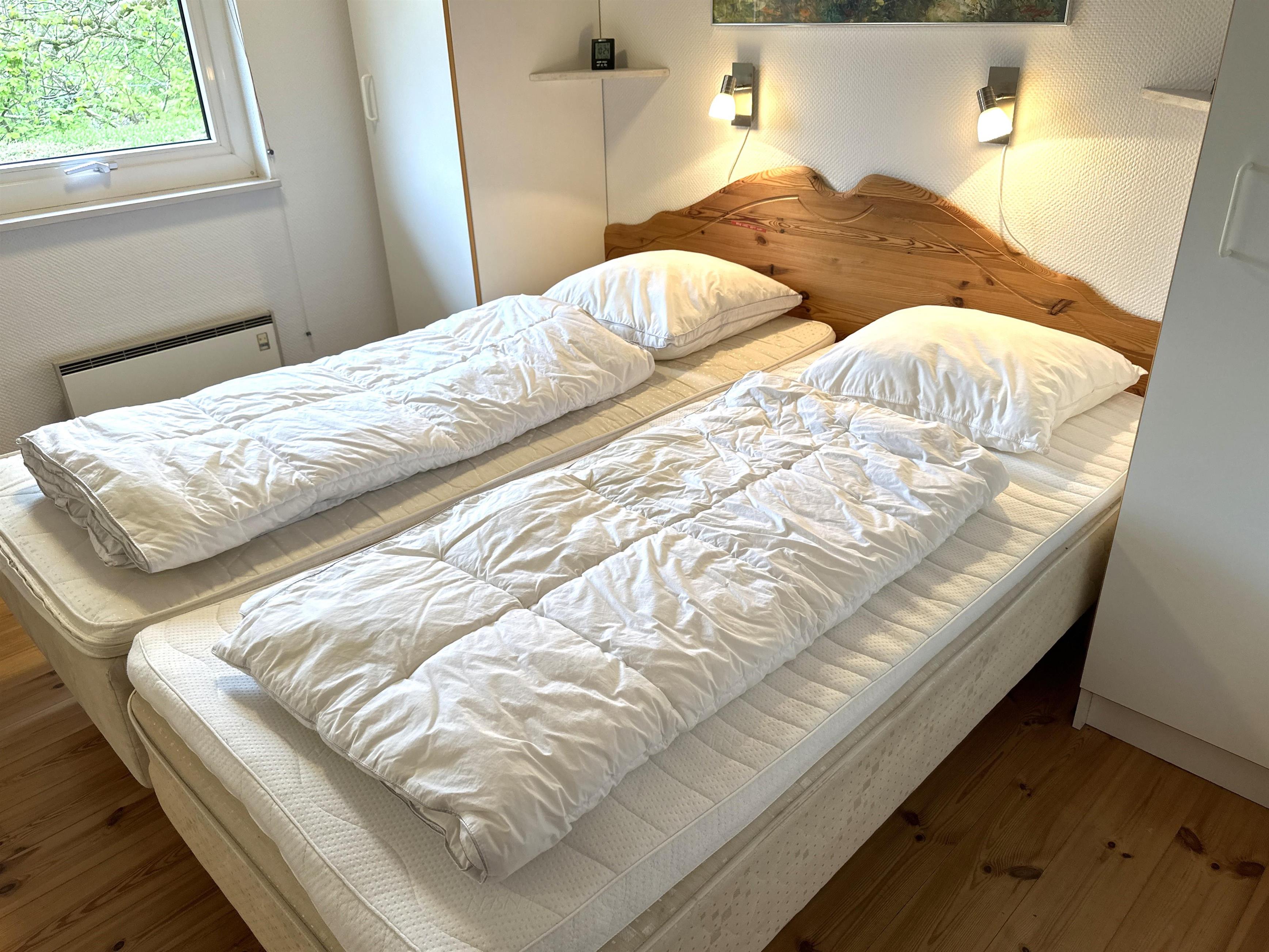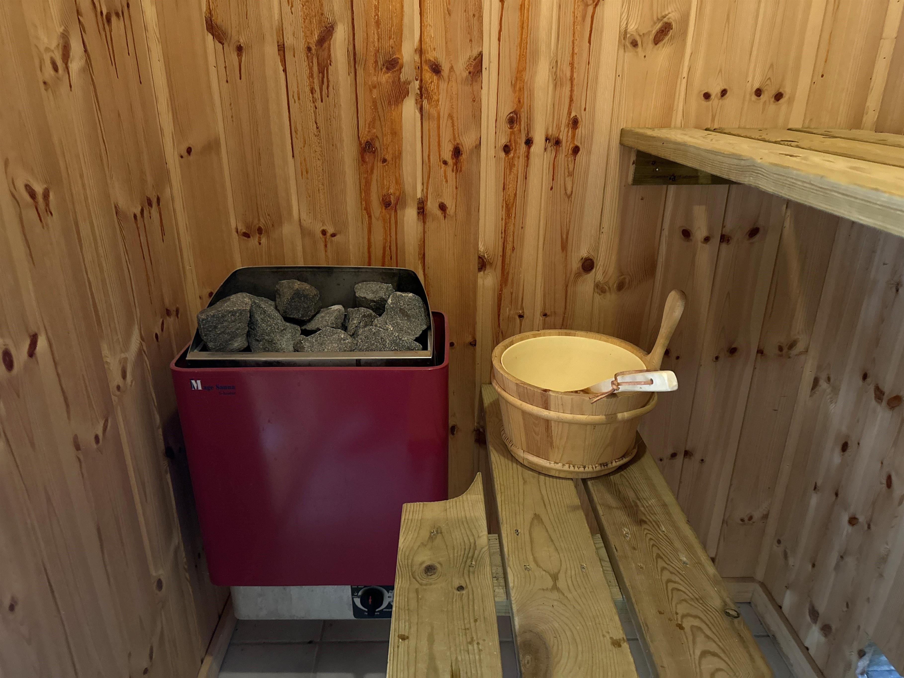 Der er tre komfortable soveværelser – to med dobbeltsenge og ét med to enkeltsenge – samt to badeværelser. Det store badeværelse har spa-bad, og der er desuden en sauna, som giver mulighed for ekstra forkælelse efter en dag med strand, leg eller vandreture. Huset har lyse trævægge og lofter, der giver en hyggelig og hjemlig atmosfære, så du straks føler dig velkommen.