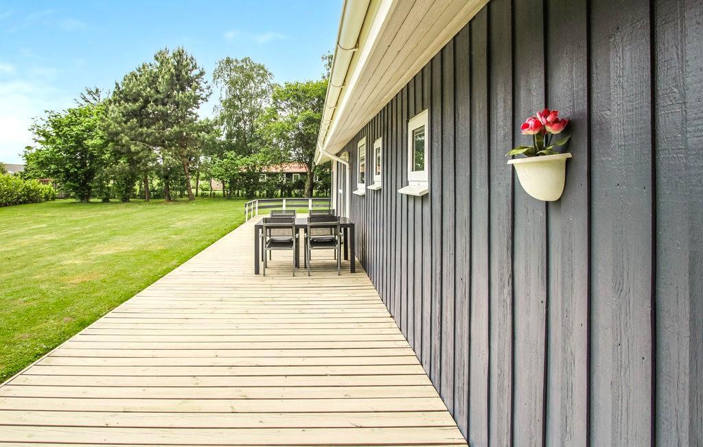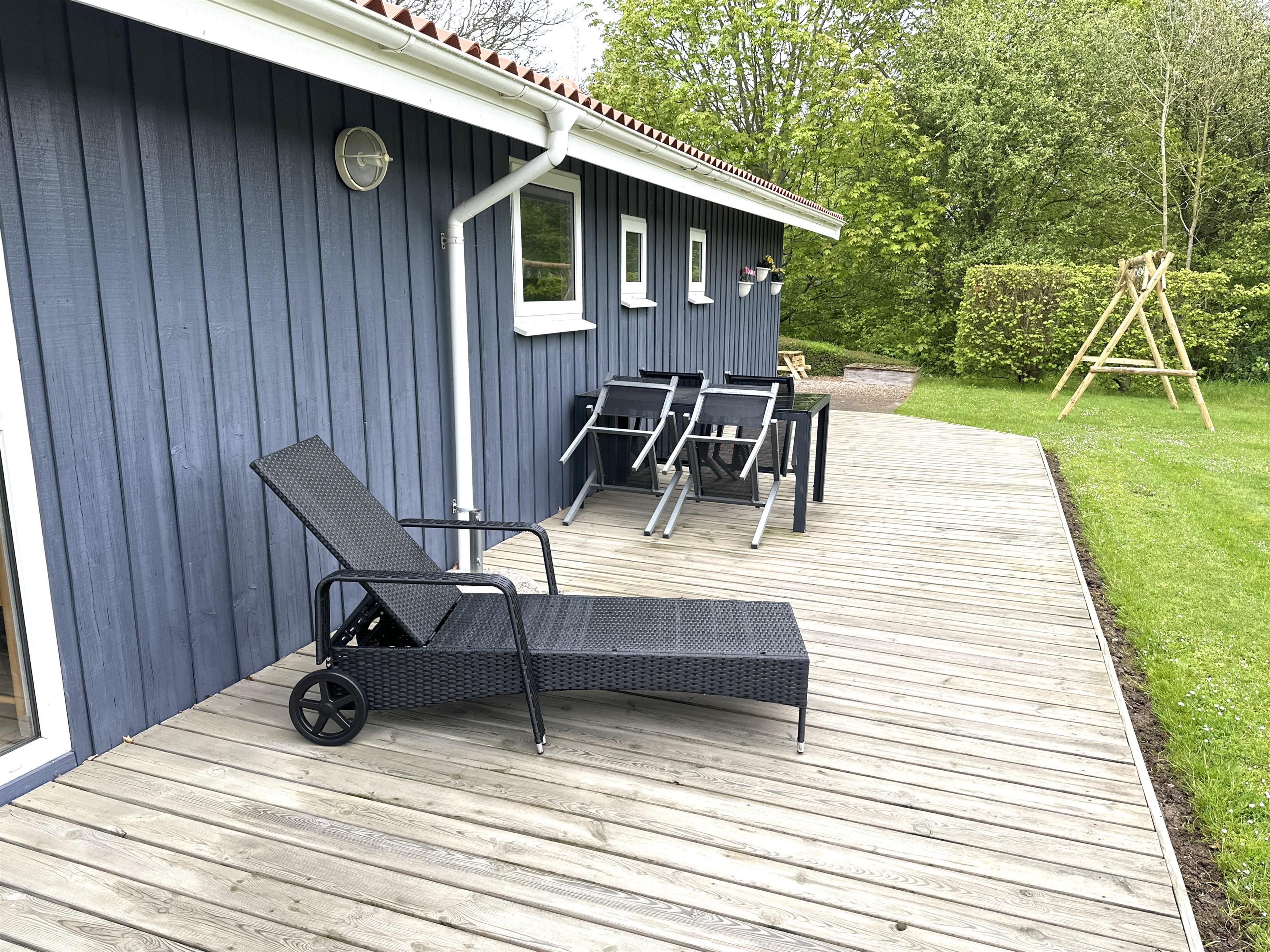 Udenfor kan du nyde en stor, delvist overdækket terrasse, hvor måltider kan nydes i det fri, eller hvor du kan slappe af på solstolene og nyde solen. Den store græsplæne giver masser af plads til leg og aktiviteter for både børn og voksne, og haven er omgivet af buske og træer, der giver en følelse af ro og privatliv. Den populære Nordøens badestrand ligger kun en kort gåtur fra huset, så I hurtigt kan komme til vandet og nyde sand og strandliv.