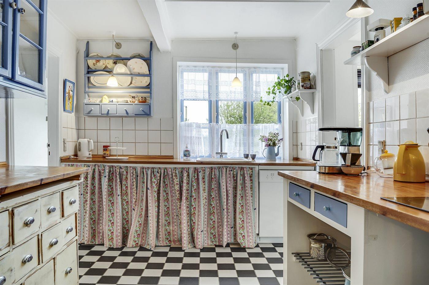 Køkkenet er udstyret med 1 køleskab. Der er 4 keramiske kogeplader, varmluftovn, mikrobølgeovn samt opvaskemaskine.