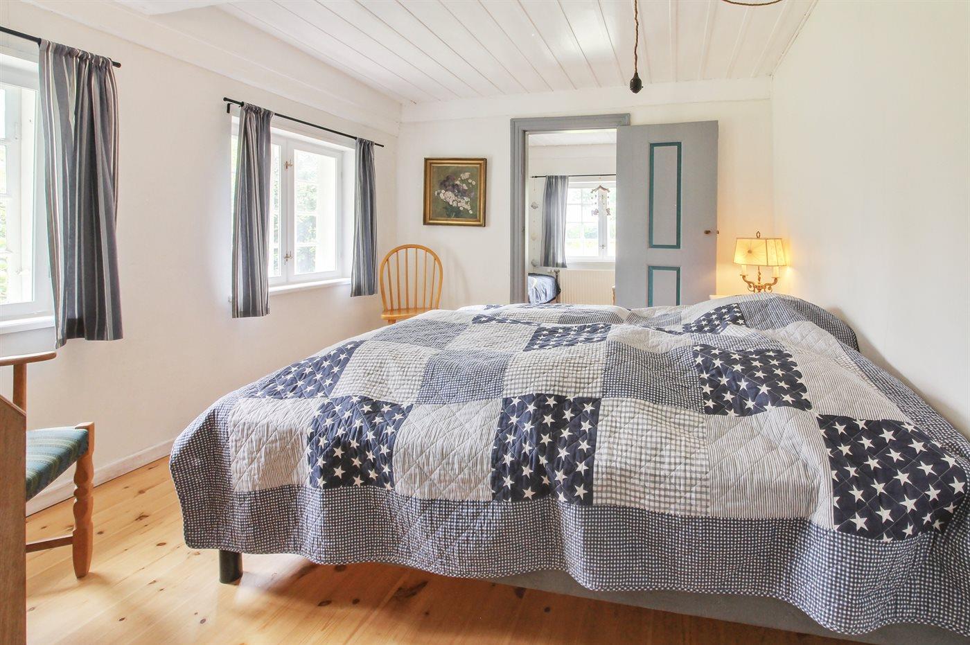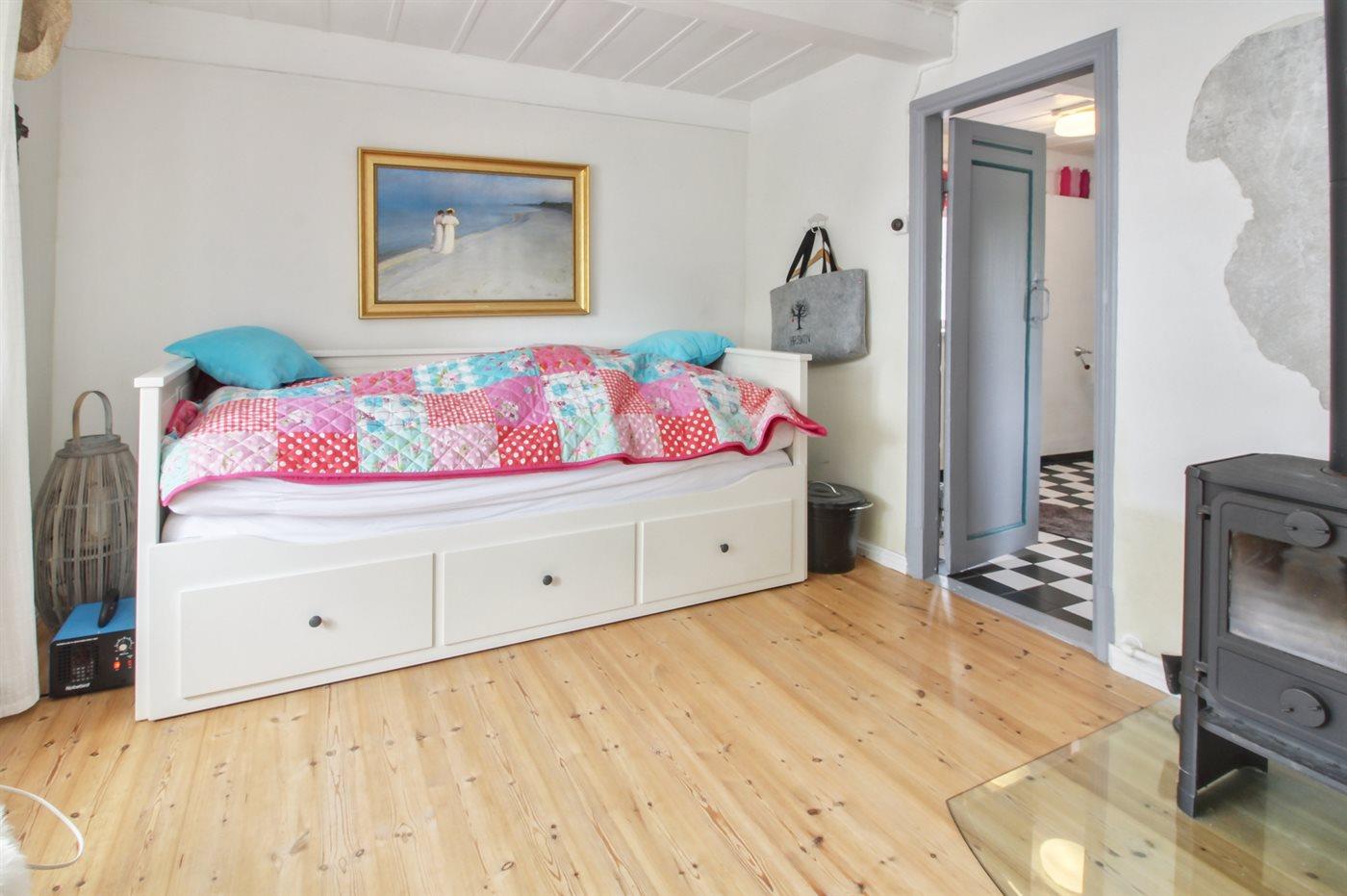 Der er i alt 3 soveværelser. Sovepladserne fordeler sig på: 2 sovepladser i dobbeltseng. 3 sovepladser i enkeltsenge. Derudover er der 1 stk. barneseng.