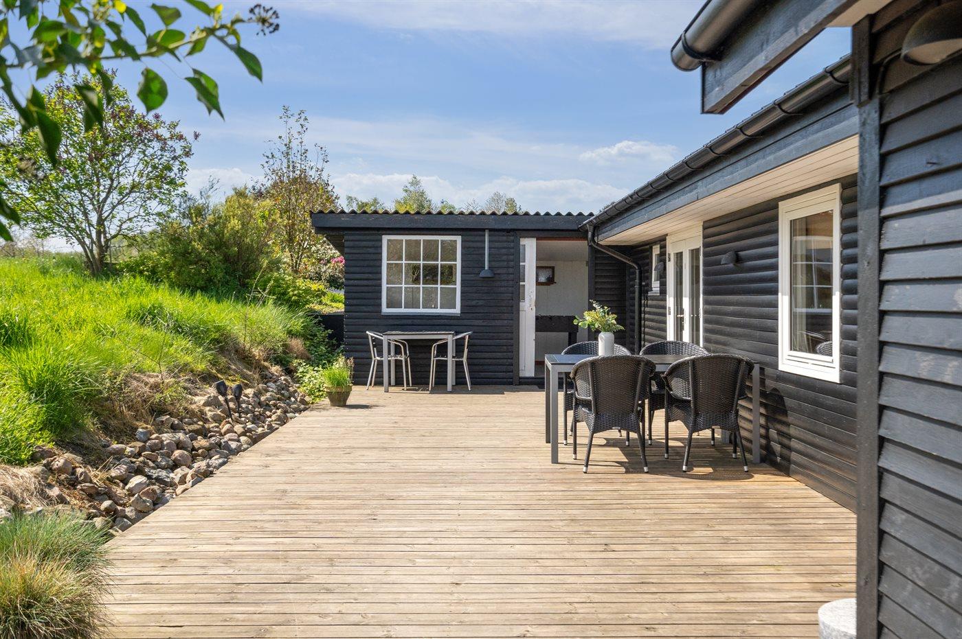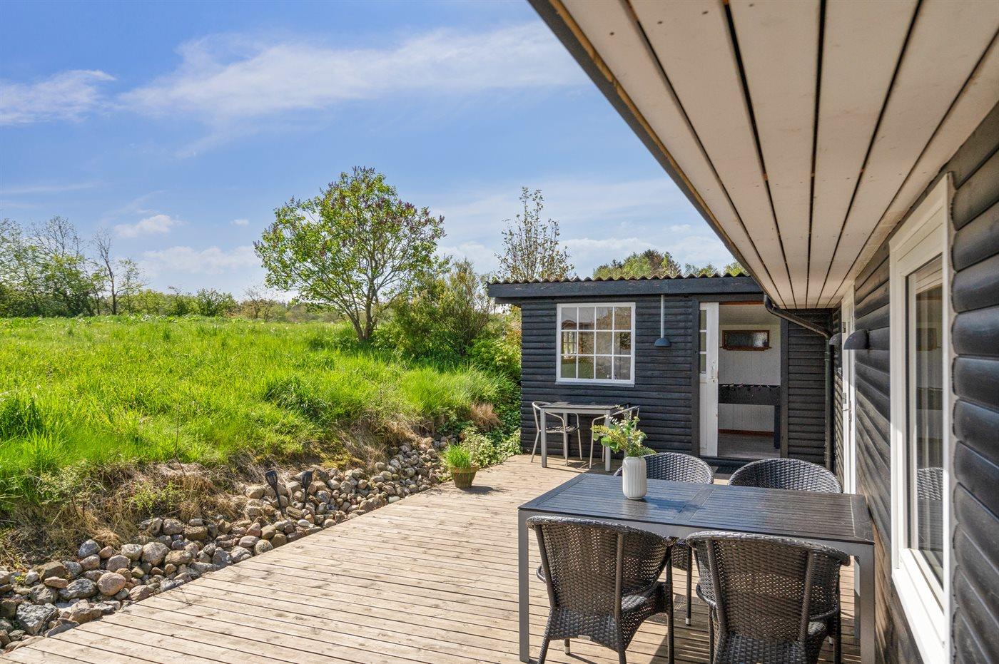 Sommerhuset har et fantastisk terrasseareal, som er fuldstændig ugeneret. Herfra kan stilheden nydes i fulde drag, og der er altid mulighed for at finde en fin lækrog. Ferieområdet indbyder til gåture i den dejlige natur, og en særlig oplevelse er et besøg på Hvidbjerg Klit, som ligger blot ca. 600 meter fra sommerhuset. Området byder også på et ishus og kaffested.