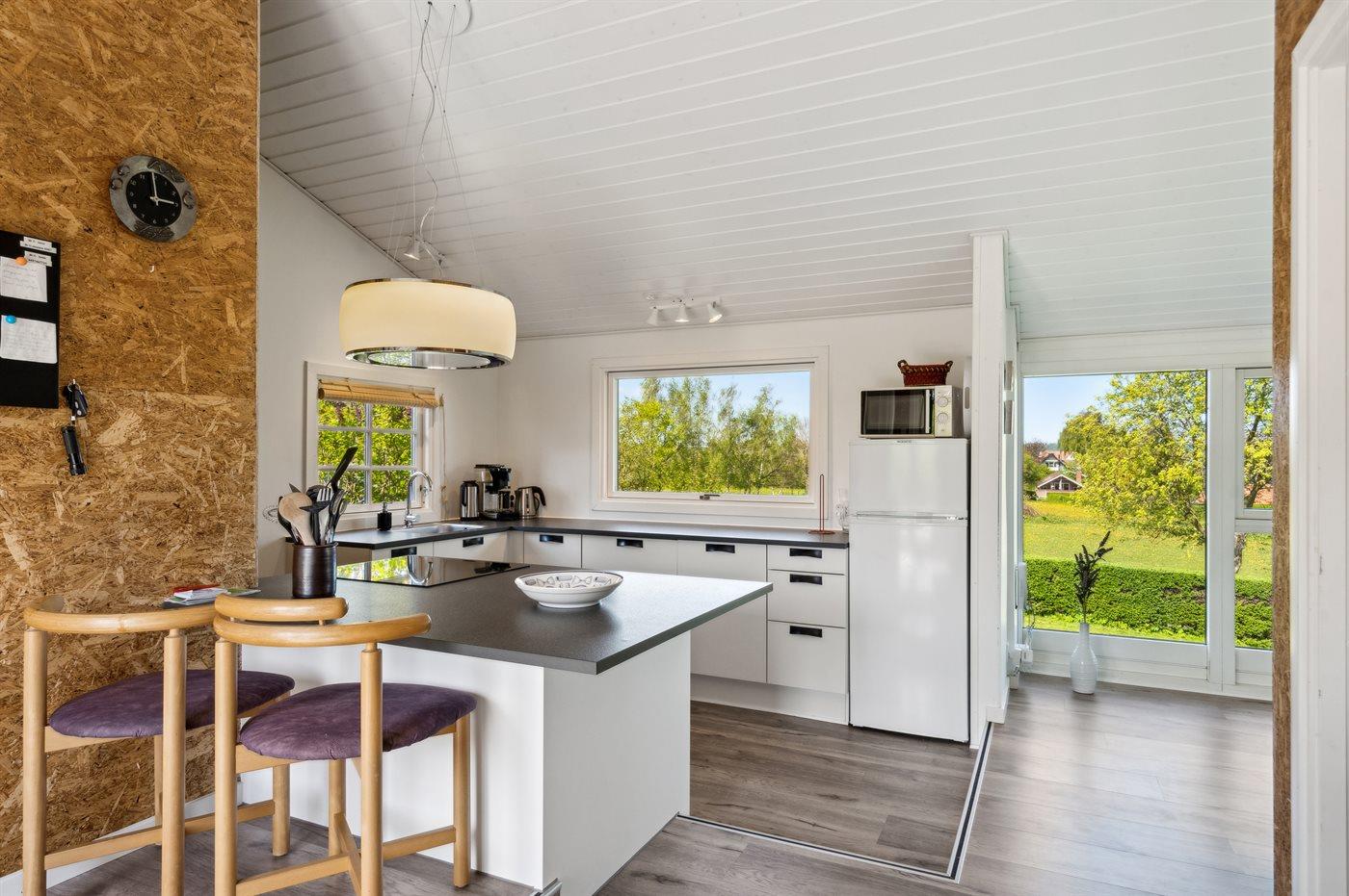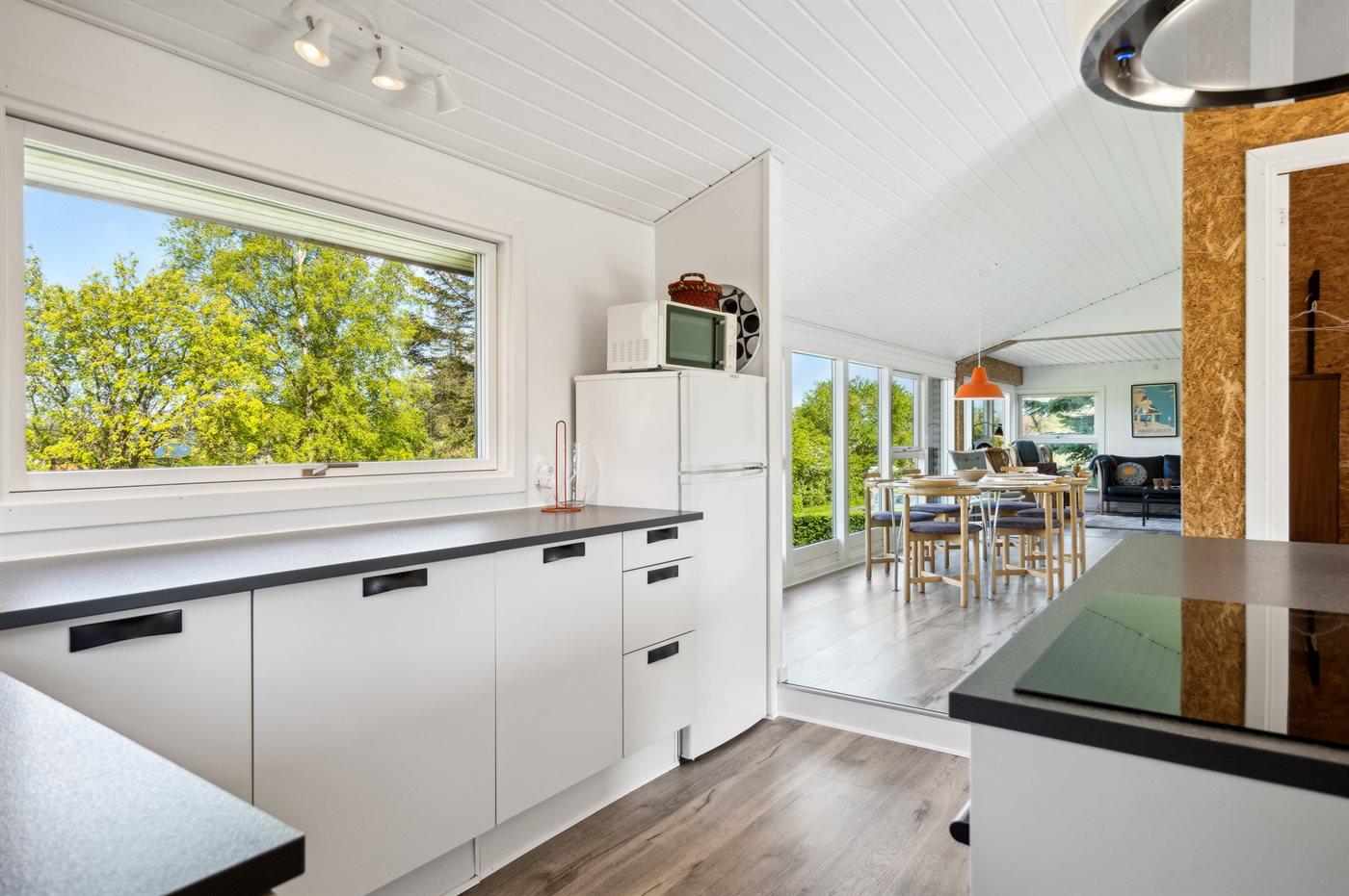 Køkkenet er udstyret med 1 køleskab. Der er 4 induktionskogeplader, varmluftovn, mikrobølgeovn samt opvaskemaskine.