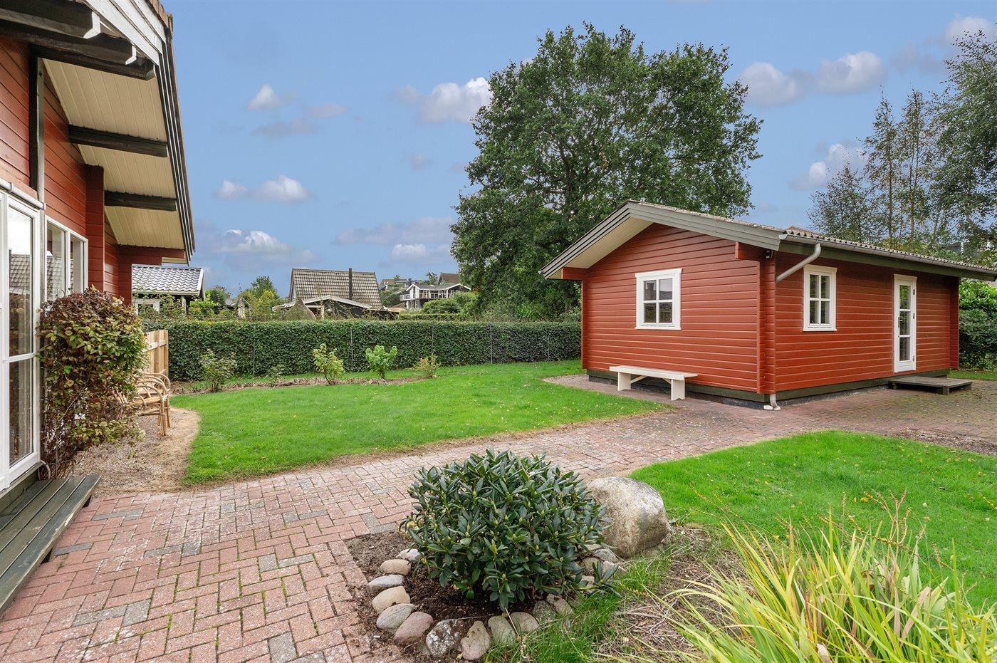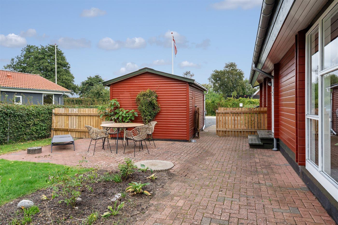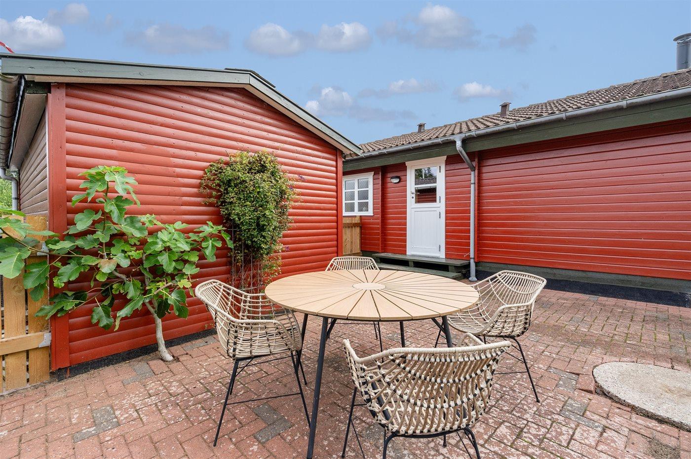 Sommerhuset byder på et dejligt terrasseområde i direkte forlængelse af den hyggelige udestue, som kan være med til at forlænge de lune sommeraftener.