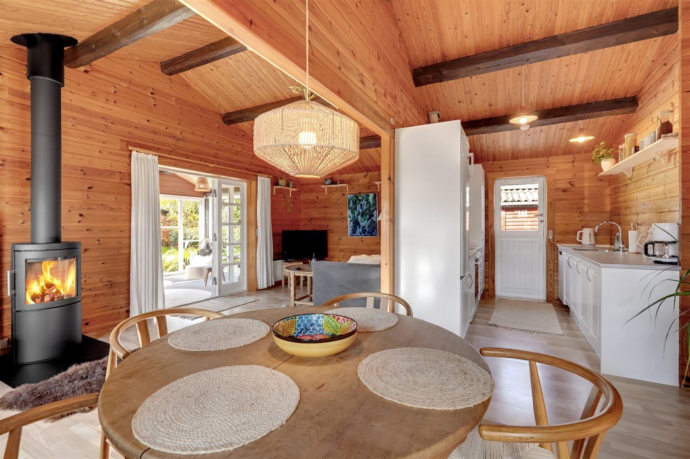 Indvendigt fremstår sommerhuset i god stand med en meget hyggelig atmosfære. Husets gode planløsning gør det velegnet til en familie med 2-3 børn samt muligheden for at invitere f.eks. bedsteforældre med på ferie. På den dejlige grund findes der nemlig et fint anneks, som er velegnet til større børn eller netop bedsteforældre. Her er der også mulighed for at medbringe hunden, som trygt kan opholde sig og boltre sig frit på den indhegnede grund.