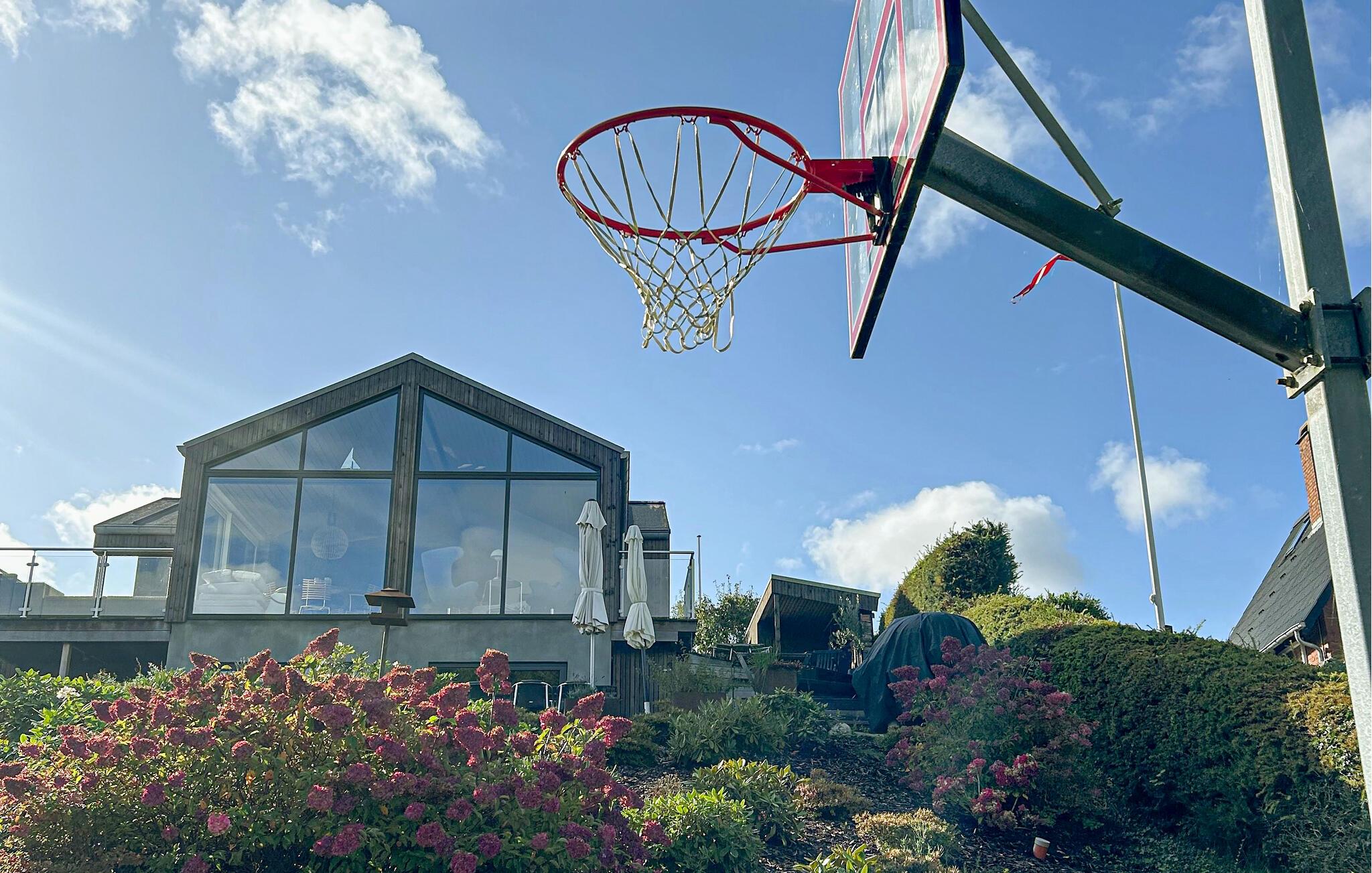 Haven er endnu et højdepunkt i jeres hus. I den hyggelige havepavillon kan I nyde roen uanset vejret, mens basketballkurven sørger for sjove stunder med hele familien.