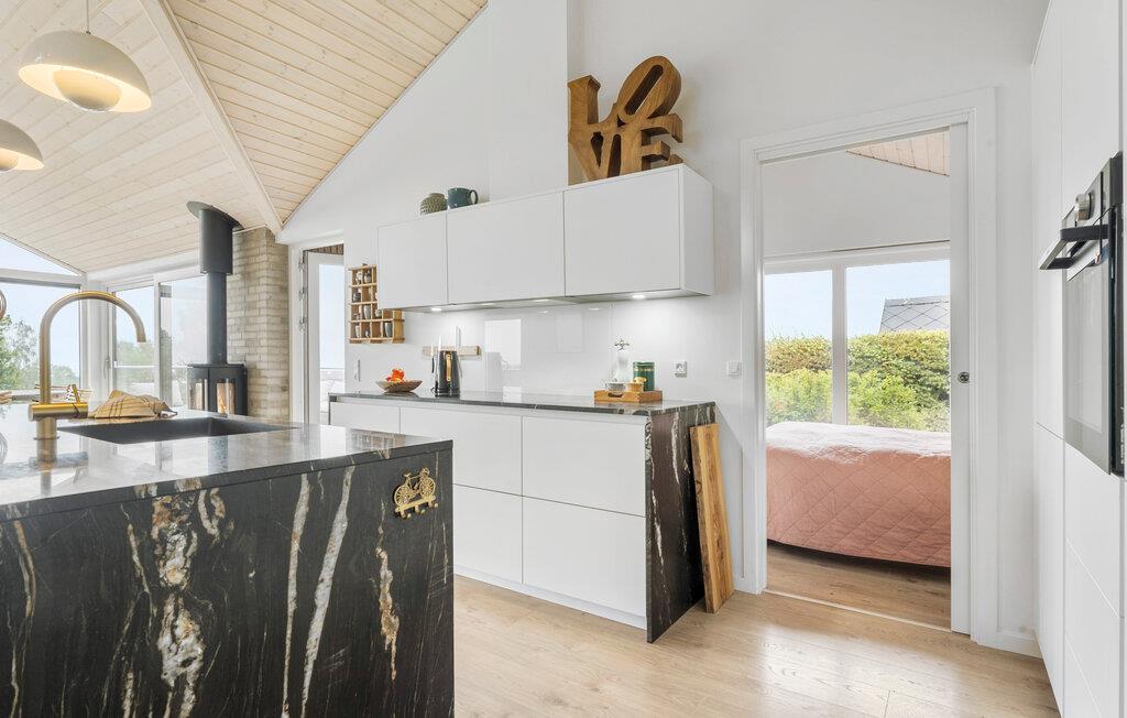 Tilbring en afslappende ferie i dette stilfulde feriehus i Mørkholt ved den maleriske Vejle Fjord. Det moderne indrettede hus imponerer med sine lyse rum og byder på en betagende udsigt over fjorden, som I kan nyde fra den hyggelige terrasse eller balkonen. Start dagen med en morgenmad i det fri, mens I beundrer den smukke udsigt over vandet og de grønne omgivelser. Inde i huset finder I en åben stue med et moderne køkken, hvor I kan lave mad sammen og nyde rolige aftener. Afslut dagen med ro foran brændeovnen.