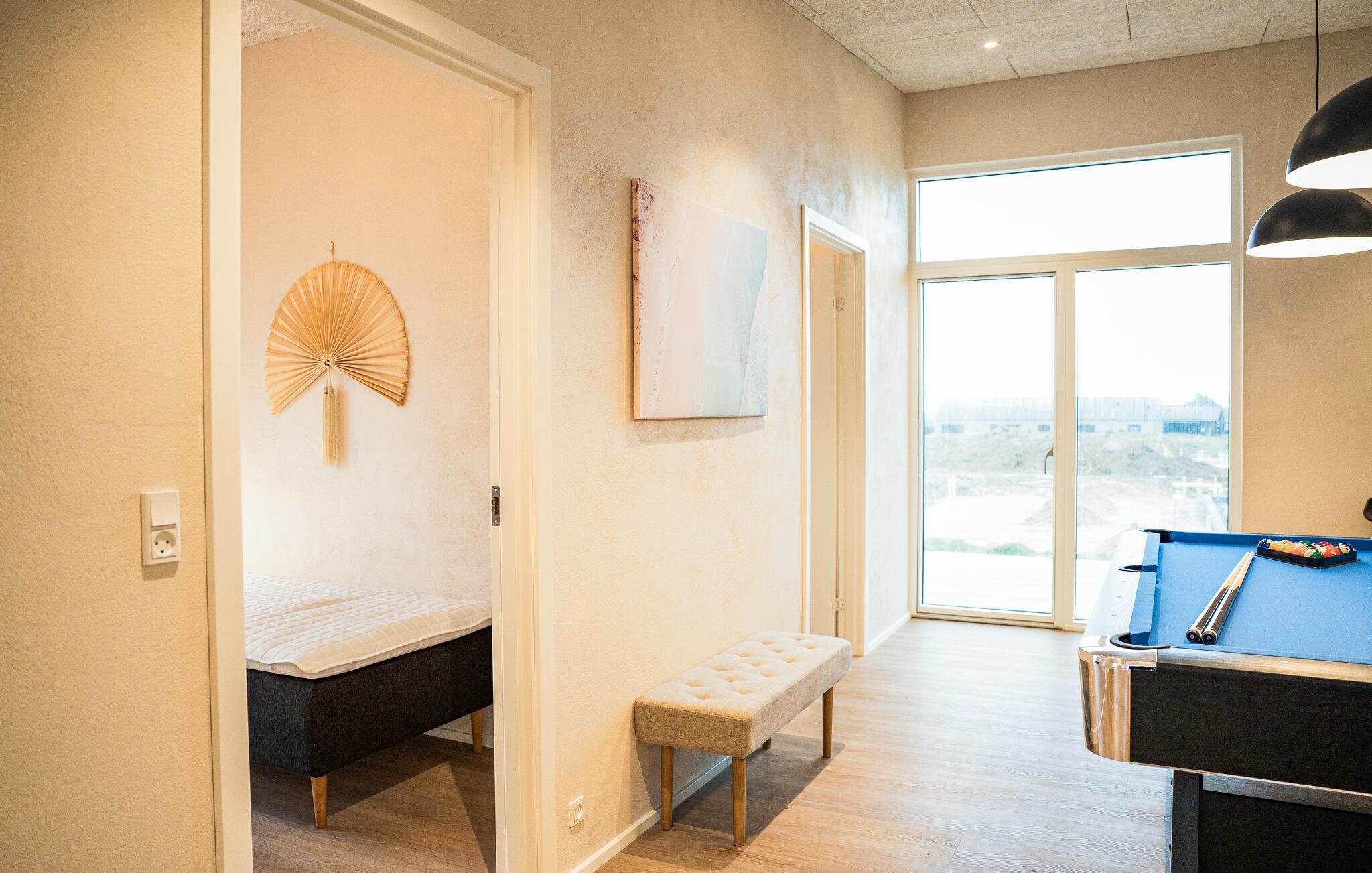 Træd indenfor, og lad jer byde velkommen af de lyst indrettede rum, hvor store vinduespartier lukker dagslyset ind i hele huset. Brug det moderne køkken til fælles måltider, mens spisebordet indbyder til lange aftener sammen. Hyg jer sammen i opholdsområdet på den store hjørnesofa, og sænk tempoet. Udfordr hinanden ved billardbordet eller i et spil bordtennis, og arranger små turneringer for både børn og voksne.