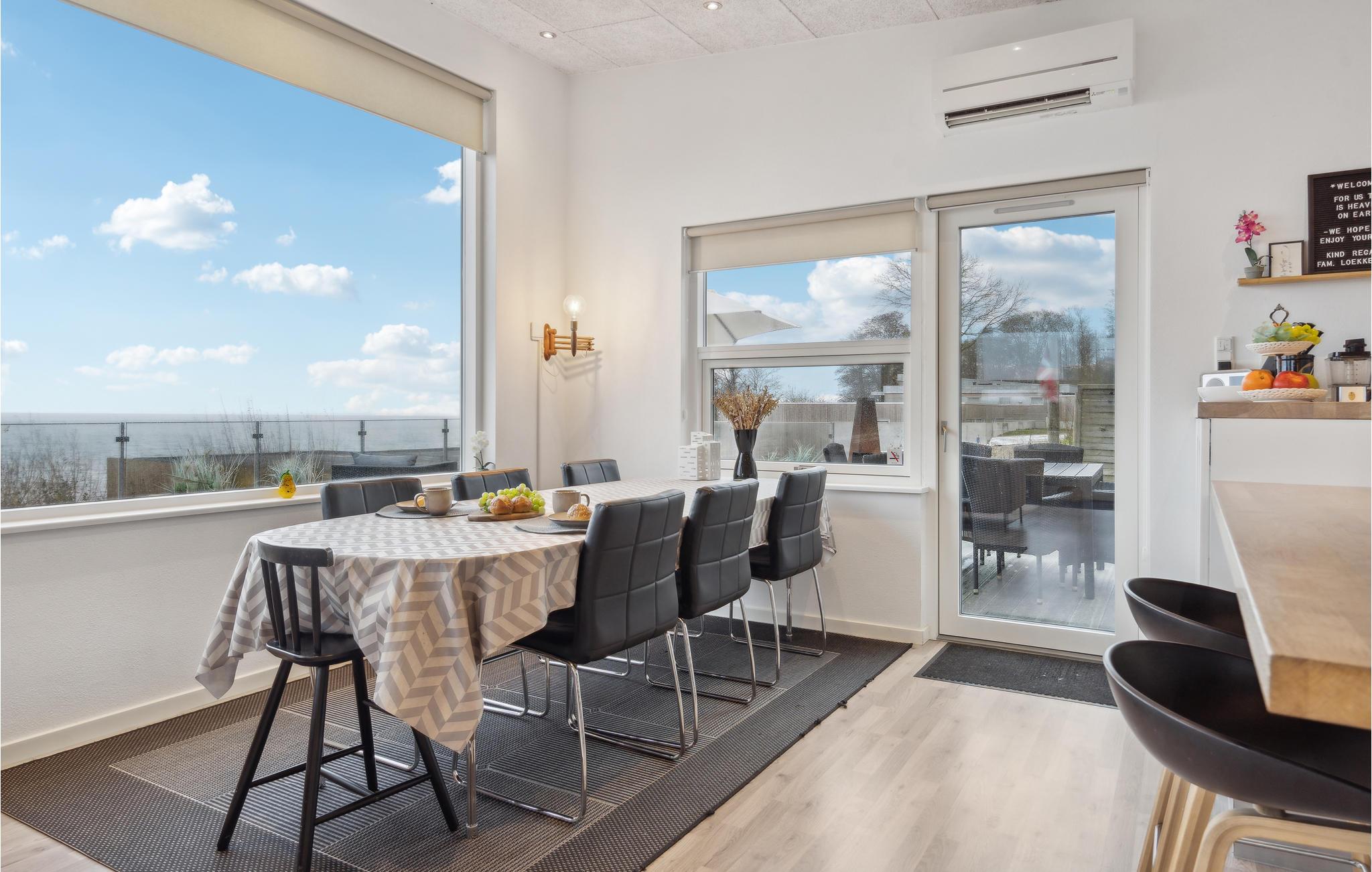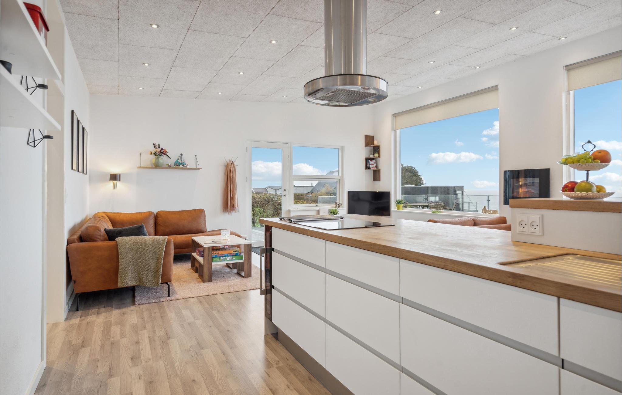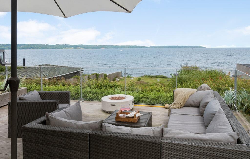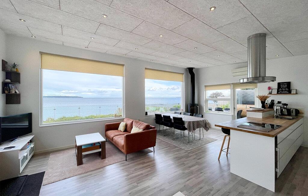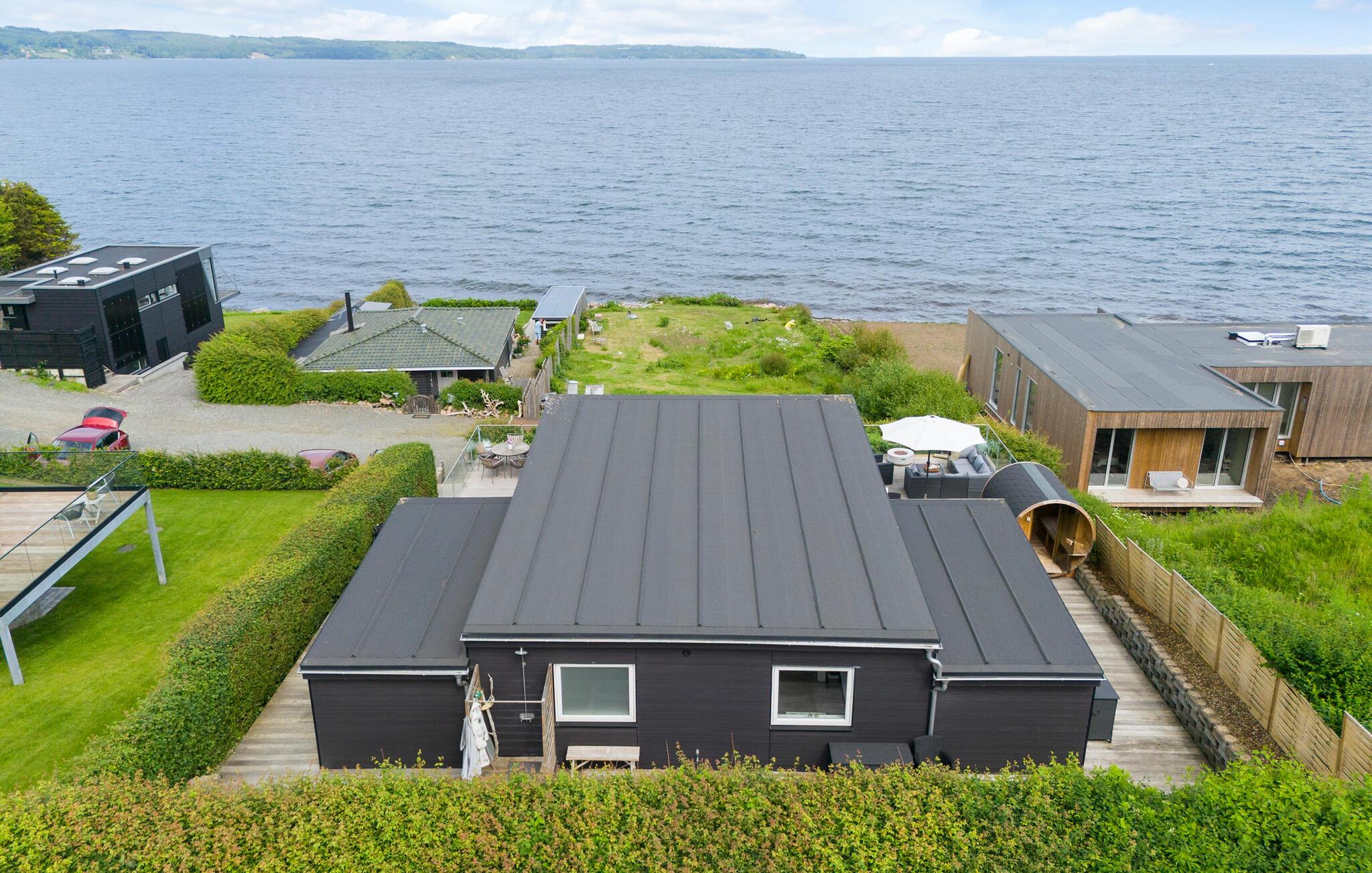 Få meter fra Mørkholts sandstrand byder dette komfortable og moderne feriehus med åben planløsning velkommen. Det store opholdsrum med en helt unik udsigt og et hjemligt strejf forener på bedste vis hyggelig fælles madlavning, leg og afslapning. Design og udsmykning fuldender boligoplevelsen. Hvad er bedre end at vågne op til udsigten over vandet? Sikkert ikke meget, hvorfor I med det samme kan indtage morgenmaden på den store terrasse og senere afslutte aftenen i loungemøblerne med et glas vin. Har I lyst til at dyppe tæerne i fjorden, skal I kun gå få skridt. Det fredede strandområde Vognkær Enge er børnevenligt og byder på finkornet sand og badebro.