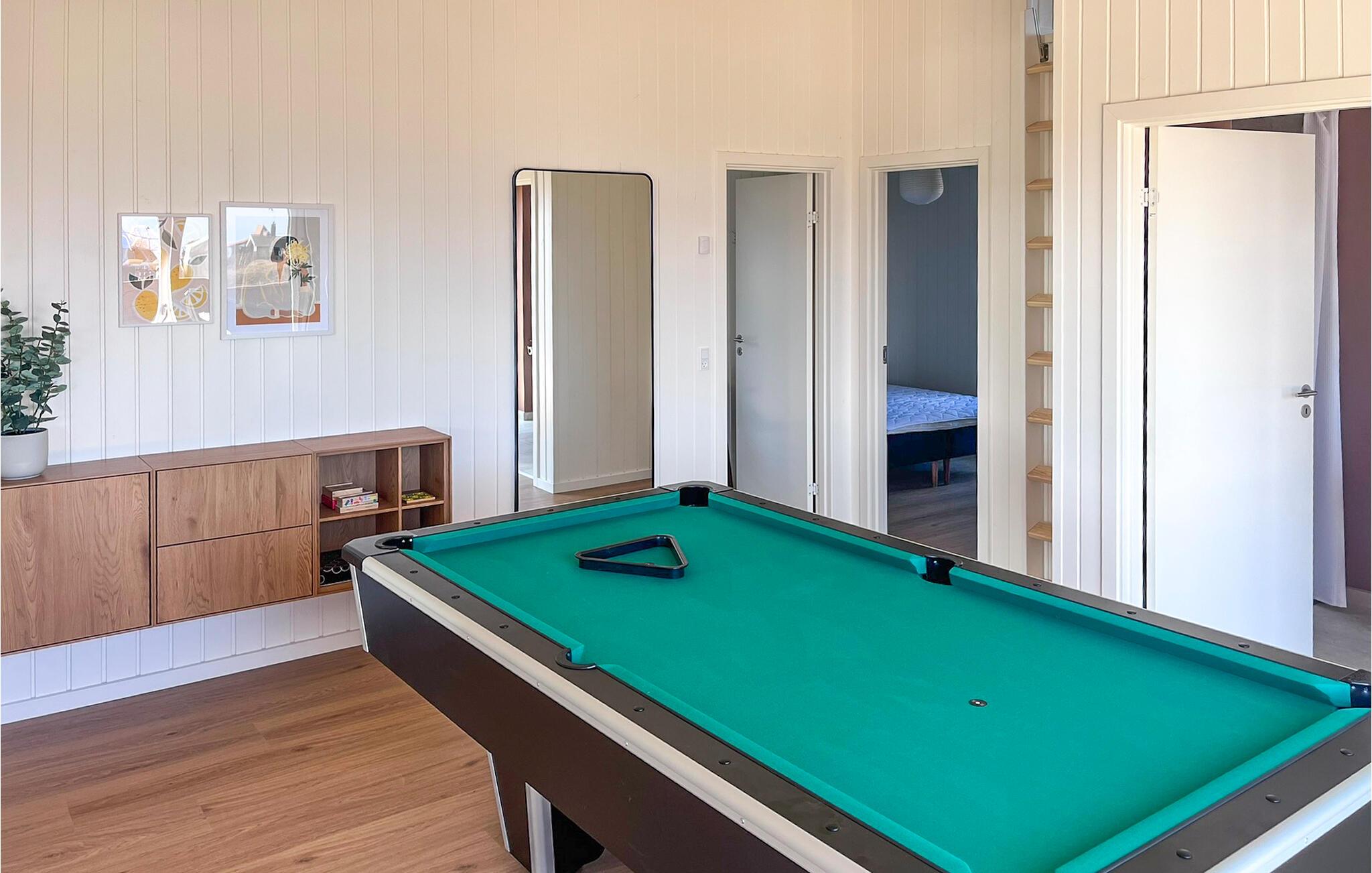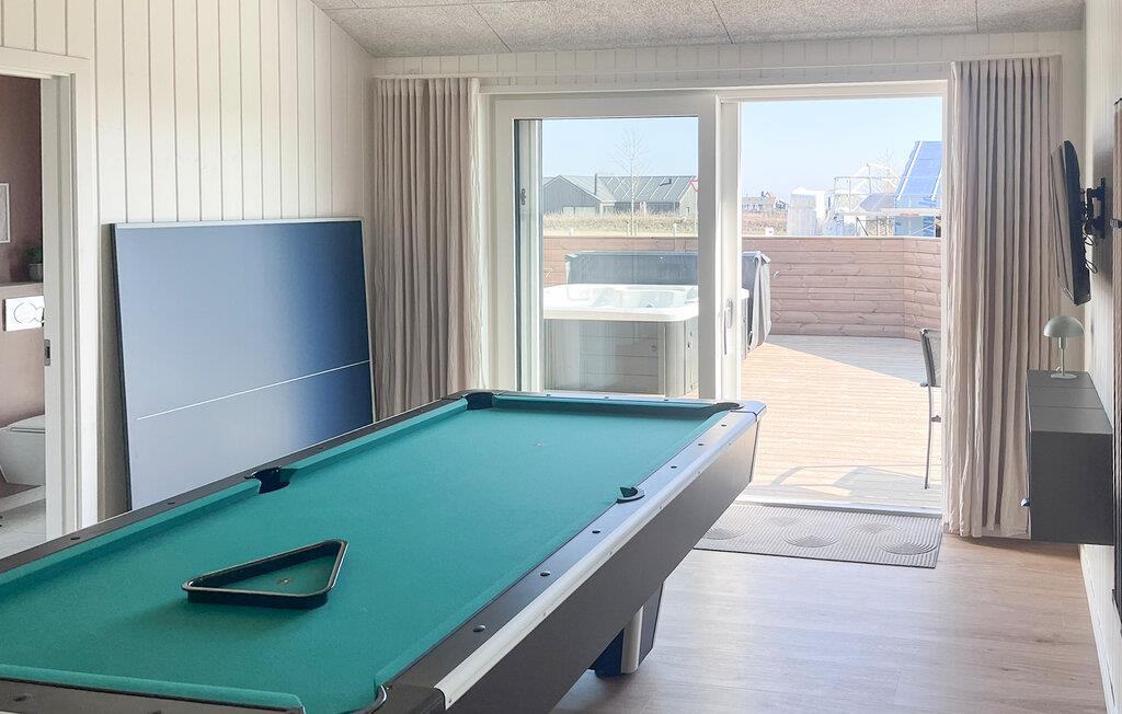 Kun en kort gåtur fra stranden venter dette rummelige feriehus på jer, ideelt til en ferie ved vandet. Nyd et spil pool eller slap af i saunaen. Efter jeres aktiviteter kan I slappe af i opholdsstuen, hvor I kan nyde måltider sammen med en fantastisk udsigt gennem gulv til loft-vinduerne, læne jer tilbage i sofaen og snakke til langt ud på aftenen.