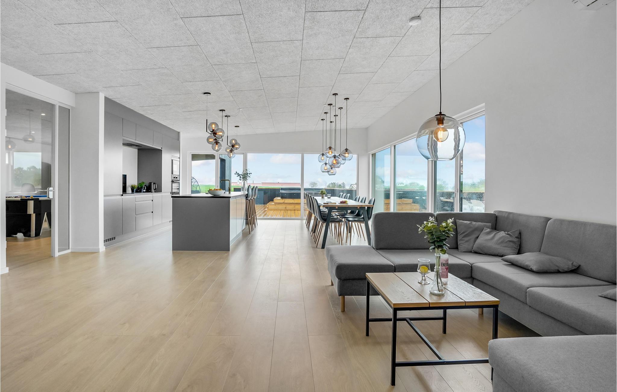 Velkommen til dette rummelige og topmoderne feriehus, hvor I virkelig kan slappe af og have det sjovt. Glæd jer blandt andet til store fladskærme i alle rum, et åbent og veludstyret køkken, hvor det er en fornøjelse at lave lækker mad, samt et aktivitetsrum med bl.a. poolbord, bordfodbold, bordtennis og arkademaskine. Op til to kæledyr er også velkomne her, så hele familien kan holde ferie sammen.