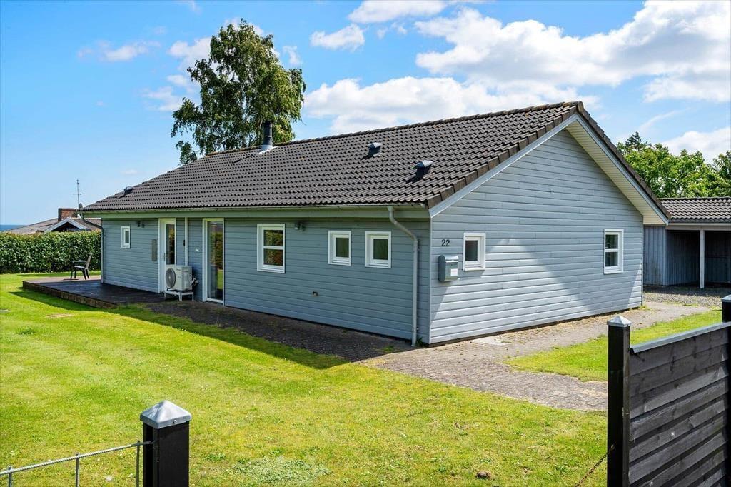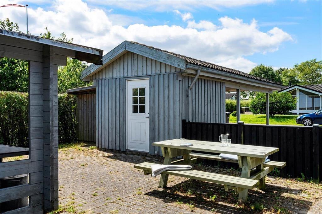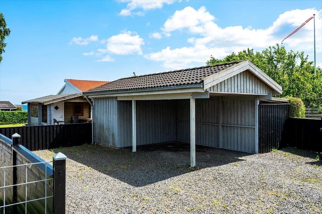 Udenfor byder sommerhuset på en delvis overdækket terrasse, hvor du kan nyde udsigten til vandet og føle brisen fra stranden. Her er det oplagt at starte dagen med morgenkaffen og en god bog, mens du lytter til fuglesang og bølgernes sagte brusen. Terrassen er også perfekt til aftensmad under åben himmel, måske med friskfanget fisk fra nærliggende fiskevande. Den store grund giver masser af plads til leg og aktiviteter for både børn og voksne. Med carporten på grunden kan du parkere bilen i skyggen, så den altid er kølig og klar til udflugter.