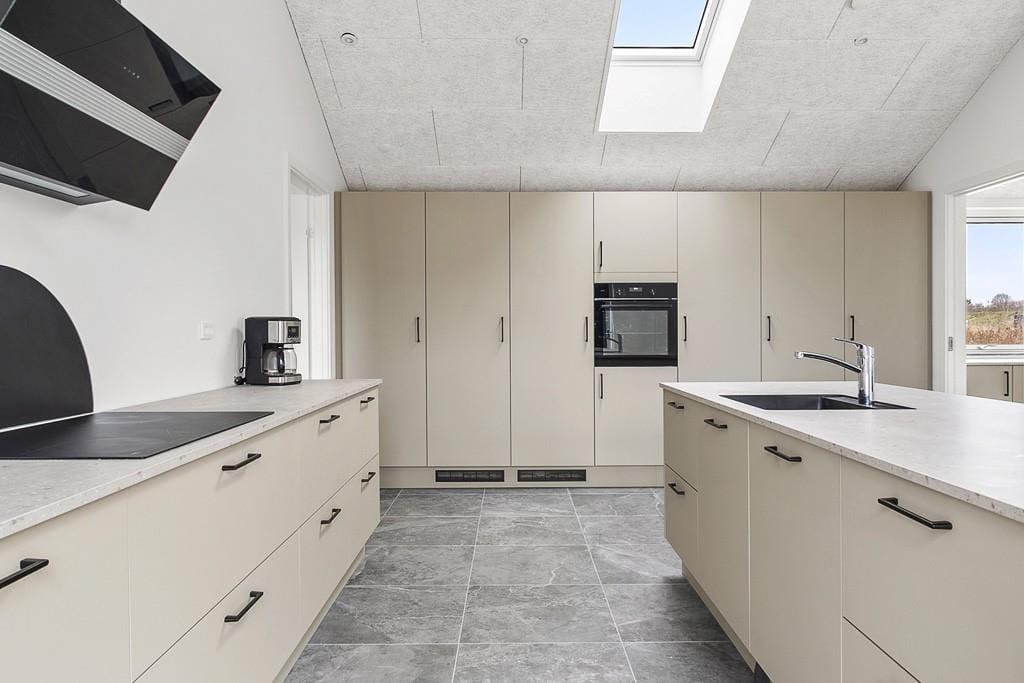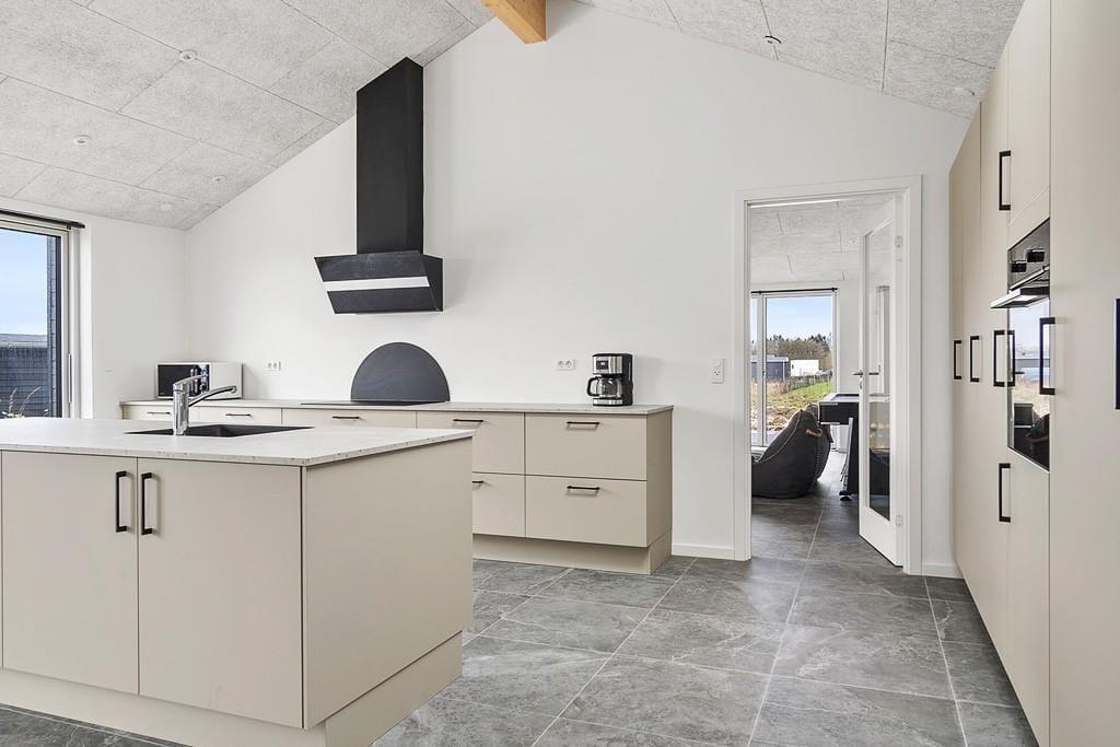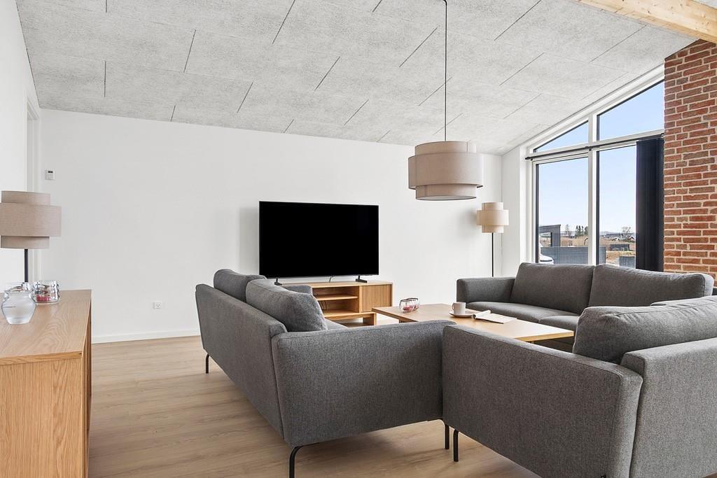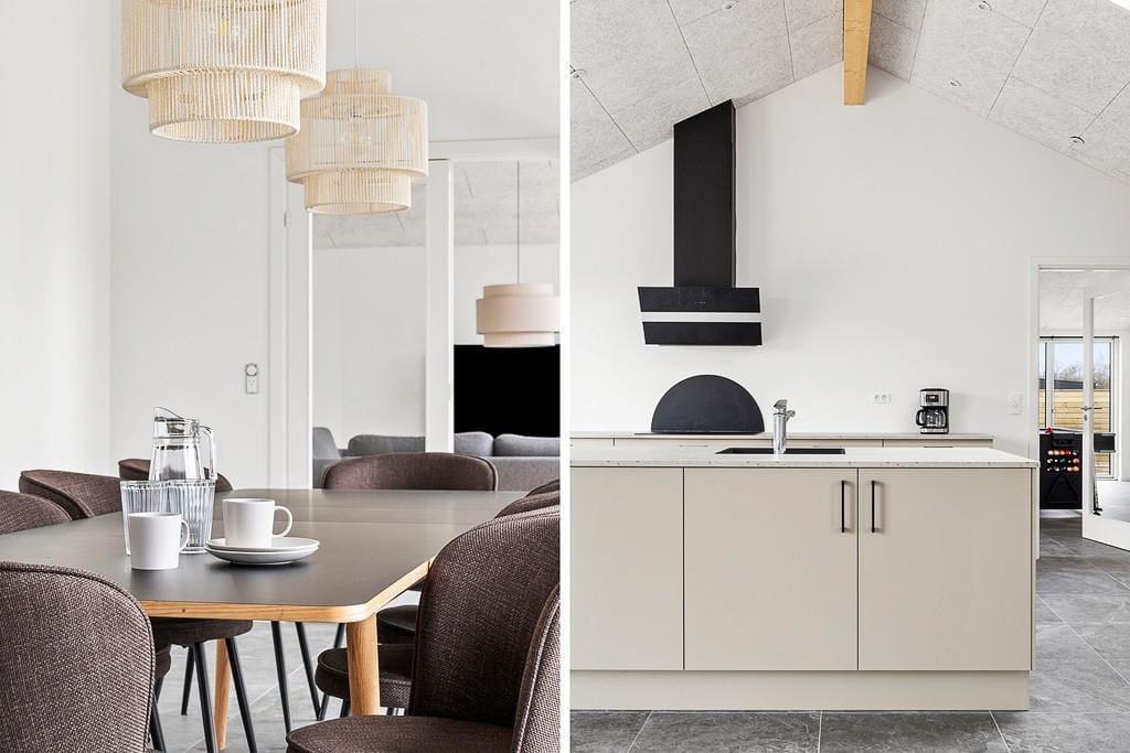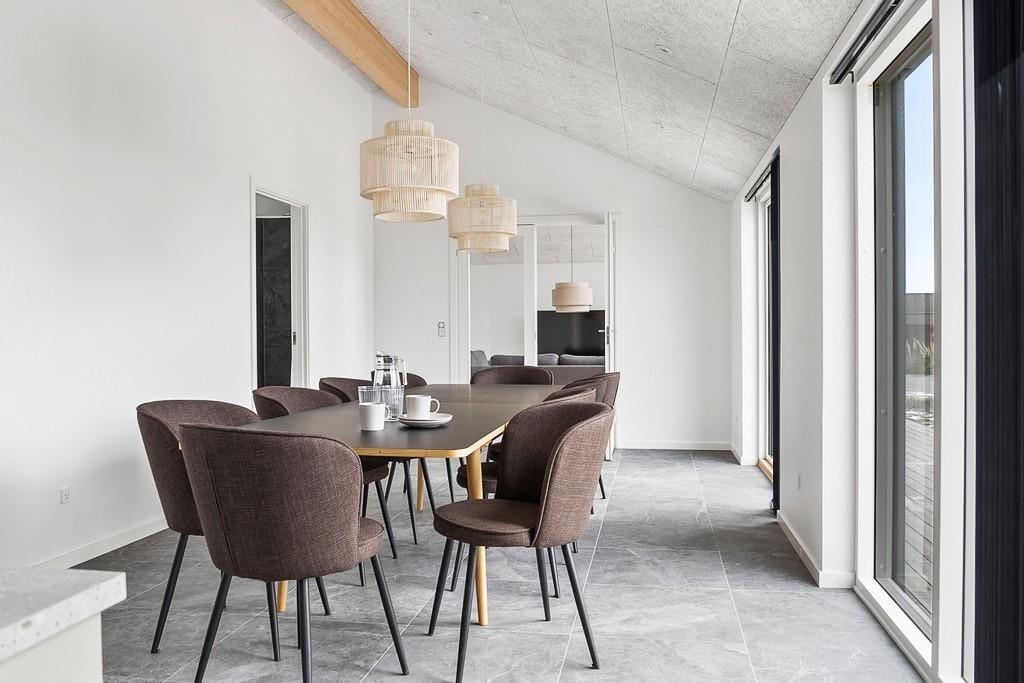 Indenfor byder sommerhuset på en lys og indbydende atmosfære, hvor moderne linjer og gennemtænkte løsninger skaber en behagelig ramme om ferien. De store vinduespartier lukker dagslyset ind og giver en naturlig forbindelse mellem inde og ude, så du hele tiden fornemmer omgivelserne omkring dig. Husets indretning indbyder til samvær, hvad enten det er omkring spisebordet, i opholdsrummet eller i husets aktivitetsområder, hvor der er plads til både leg og afslapning. Som prikken over i’et kan du forkæle dig selv i den indendørs infrarøde sauna, der er ideel til at løsne op i kroppen efter en dag med frisk havluft og lange gåture. Her er der tænkt på både komfort og stemning, så du hurtigt føler dig hjemme og kan finde ferieroen frem.