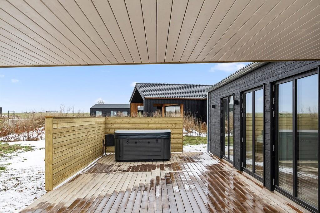 Sommerhusets terrasse strækker sig næsten hele vejen rundt om huset og giver dig mulighed for at følge solen fra morgen til aften. Her kan du starte dagen med en kop kaffe i den friske luft og slutte den af med lange, lune aftener under åben himmel. Udendørs venter ægte wellness med både udespa og tøndesauna, hvor du kan læne dig tilbage og nyde varmen, mens skuldrene sænker sig, og feriestemningen for alvor indfinder sig. Haven er under færdiggørelse og står klar inden foråret, hvor den vil danne en grøn og indbydende ramme om udelivet. Nye billeder følger, når anlægget er helt på plads, men allerede nu er der lagt op til masser af skønne stunder med afslapning, grin og nærvær.