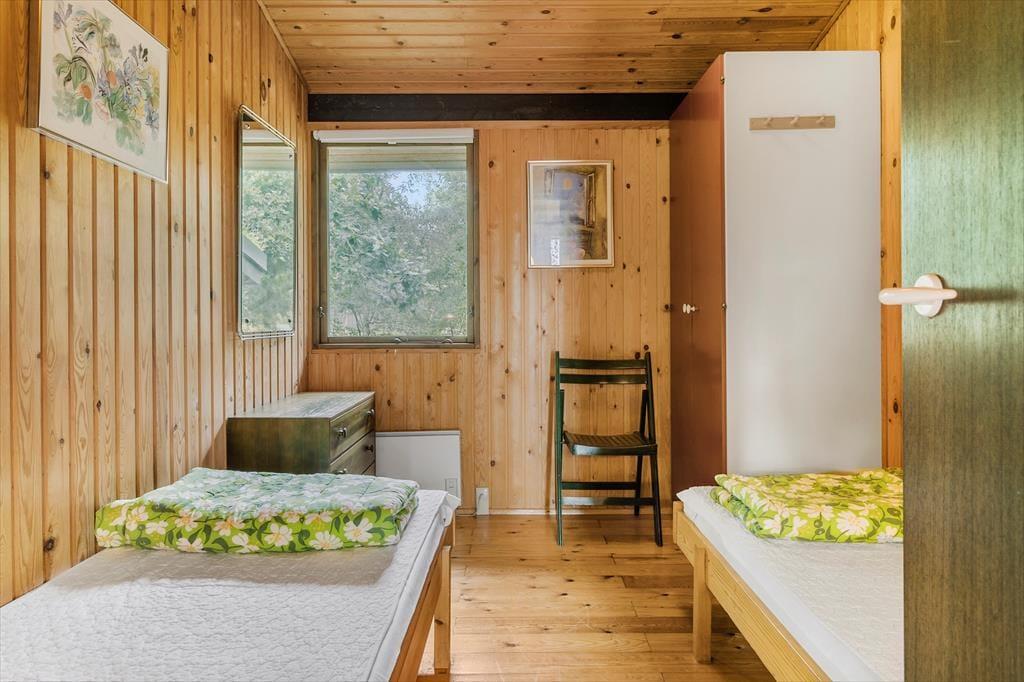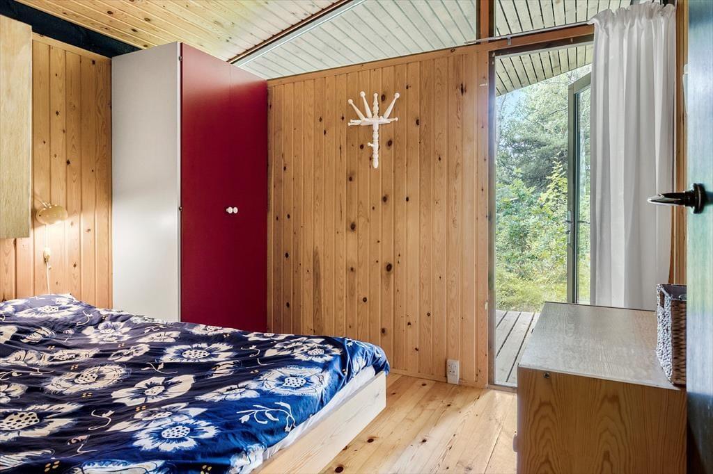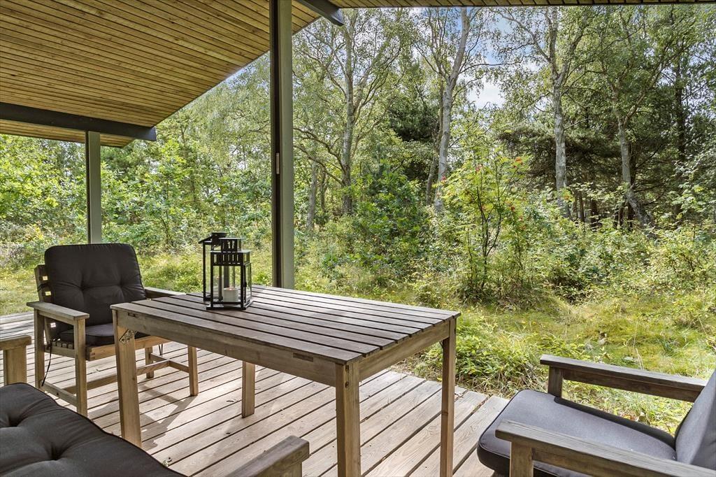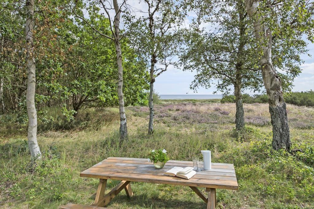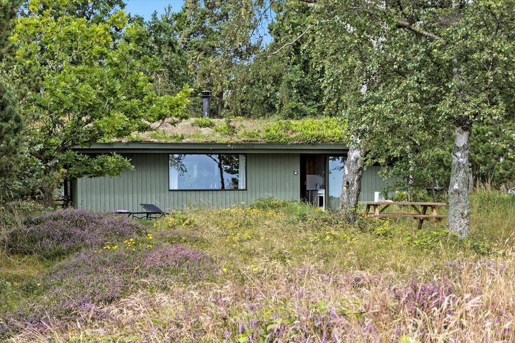 Sommerhuset ligger på en naturgrund, hvor træer, græs og lyng giver følelsen af at være en del af landskabet. Her kan du nyde ferien i fredelige omgivelser, mens vinden bevæger sig gennem træerne, og fuglene sætter lyd til dagen.