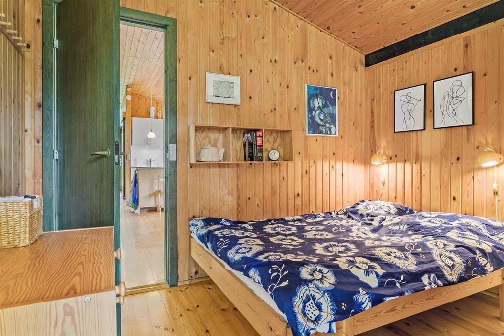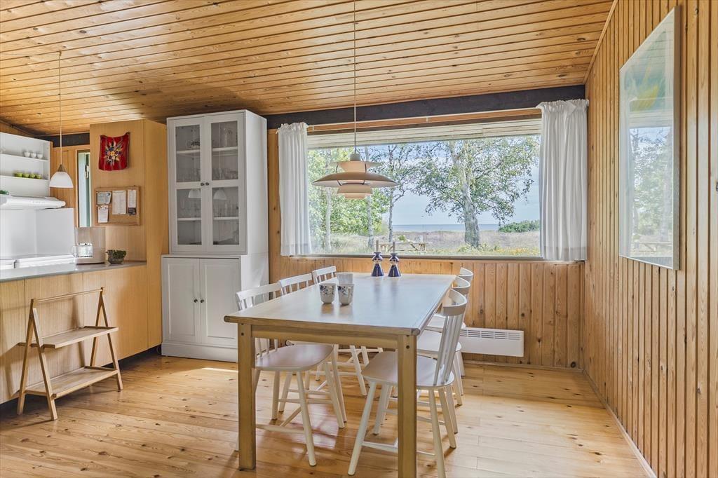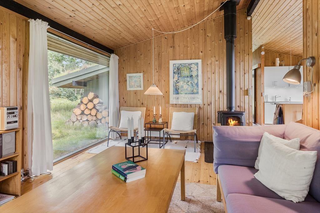 Når du træder indenfor, mødes du af en klassisk sommerhusstemning med træ på vægge, gulve og lofter. Det giver huset en varm og indbydende atmosfære, hvor du straks føler dig hjemme. Lyset strømmer ind gennem vinduerne og skaber en fin forbindelse til naturen udenfor, så omgivelserne altid er tæt på.