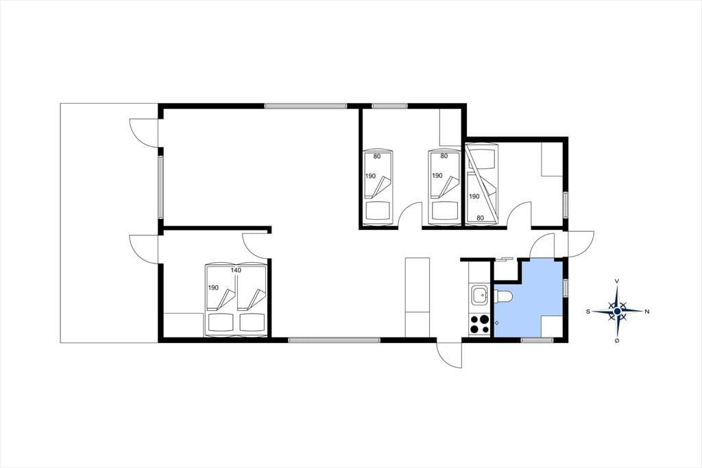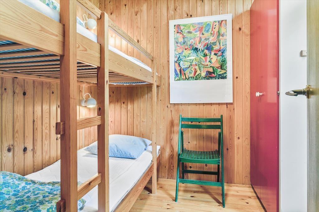 Opholdsrummet samler køkken, spiseplads og stue i ét åbent rum, hvor ferielivet naturligt udfolder sig. Her kan du tilberede måltider i roligt tempo, dække bord til lange middage og lade samtalen flyde omkring bordet. Når aftenen falder på, kan du slå dig ned i stuen med en god bog eller nyde varmen fra brændeovnen, mens flammerne skaber en afslappet stemning.
