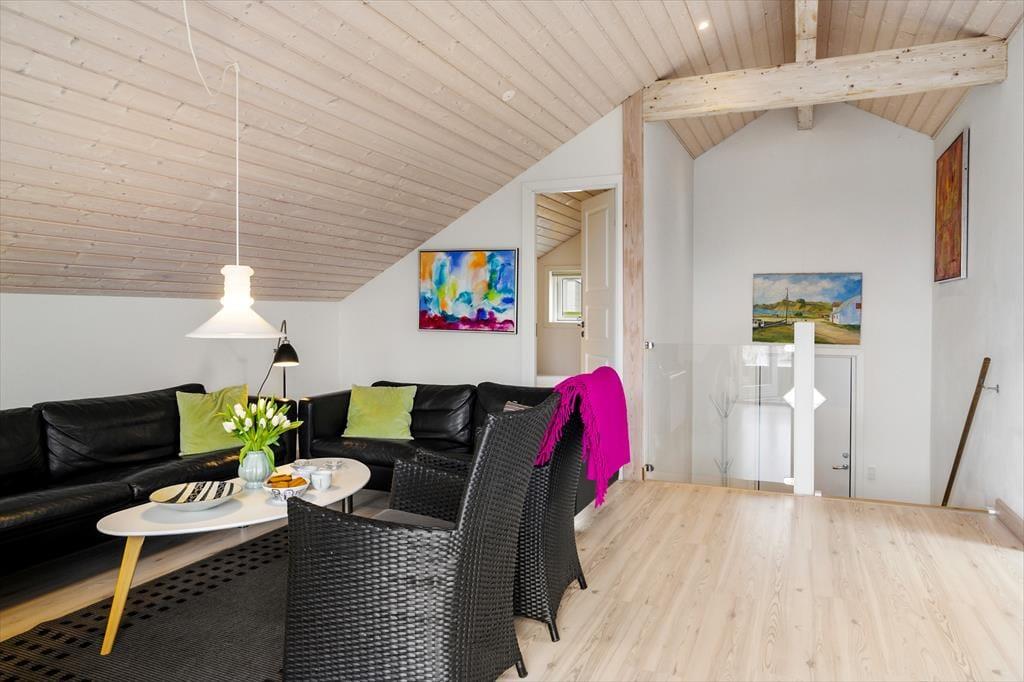 Sommerhuset er i første række til Mårup havn, så du kan bruge mange timer på at nyde udsigten direkte ud til havnen og Sælvig bugten. Sommerhuset er i to plan, og på 1. sal er et dejligt samlingsrum, hvor I kan være sammen om madlavningen, eller når I har sat jer godt til rette i sofaen.