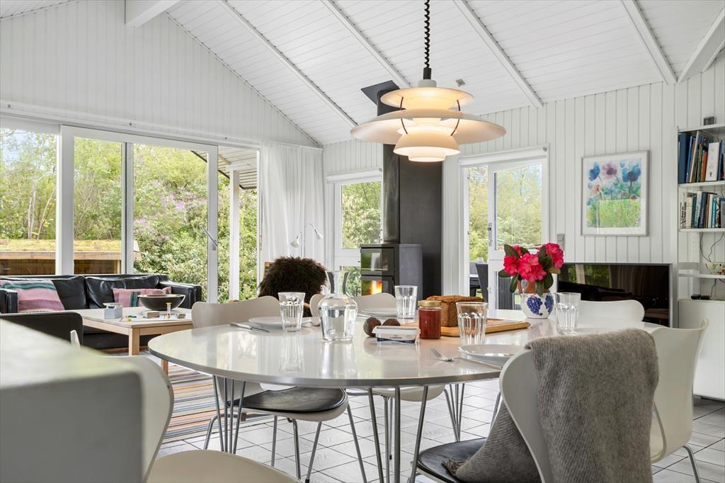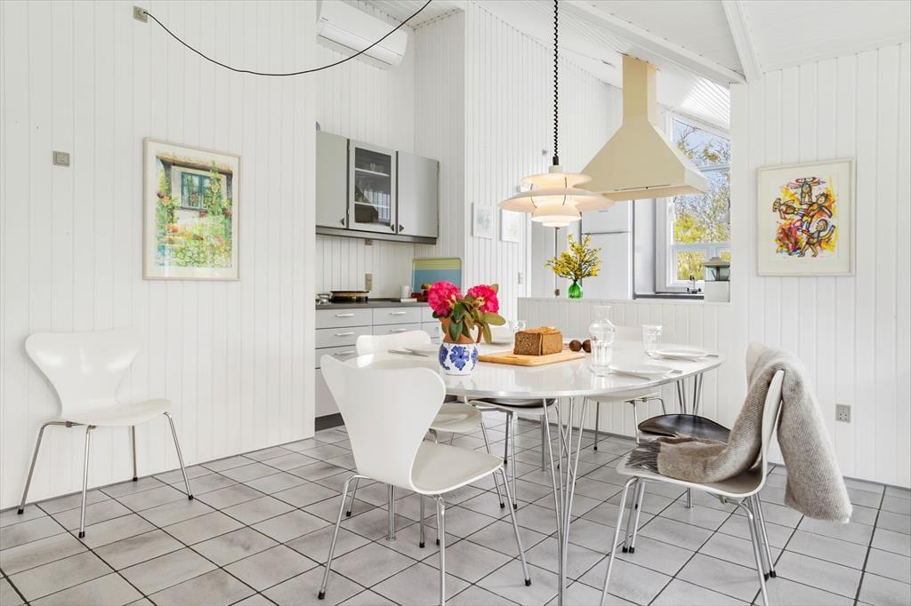 Sommerhuset er i en gennemført lys og indbydende stil med lyse trævægge i hele huset. Med det samme mærker du, at skuldrene sænker sig, og I kan nyde ferien i dette dejlige sommerhus ved en af Samsøs bedste badestrande. Køkkenet og stuen er i forlængelse af hinanden, så her kan I tilberede jeres måltider eller slappe af i sofaen og stadig tilbringe tid sammen.