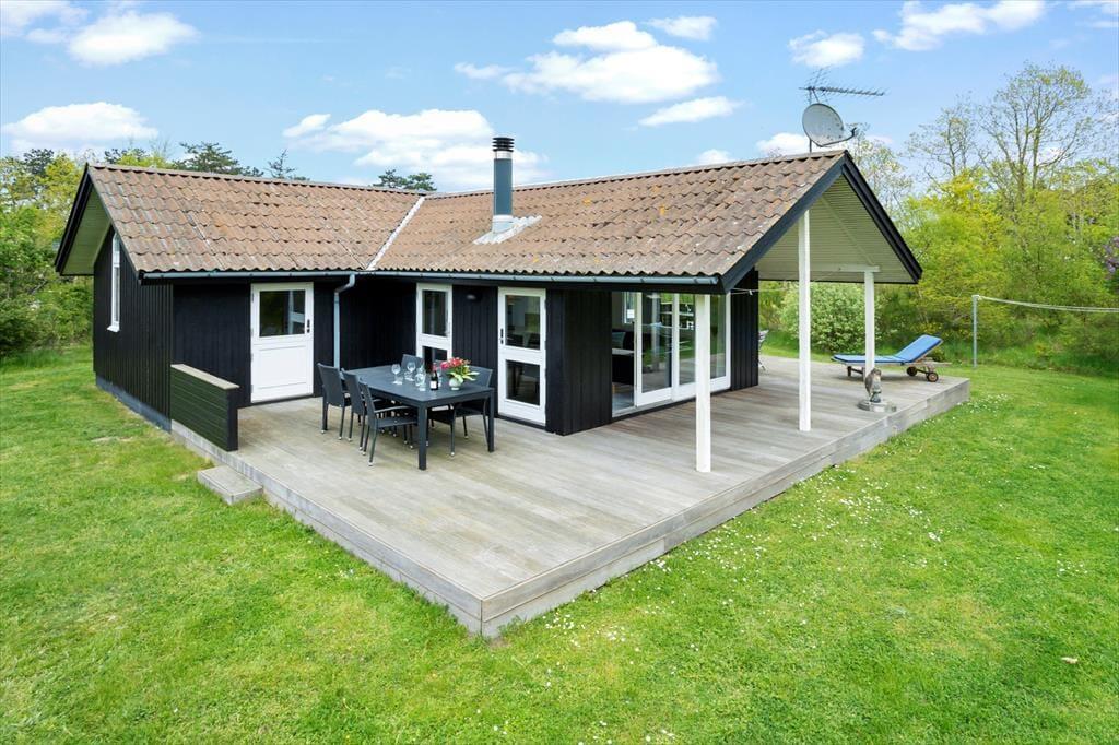 Velkommen i dette sommerhus, der er lyst, rummeligt og hyggeligt. Huset byder også på et udekøkkenet på terrassen og en shelter i haven, så omgivelserne kun 100 meter fra stranden kan nydes i fulde drag.