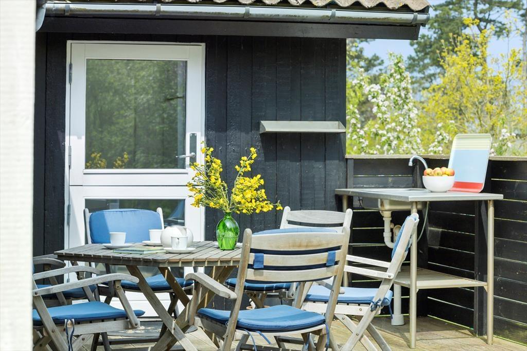 Ved køkkenet er der en dejlig østvendt terrasse, hvor I ovenikøbet kan tilberede måltiderne udenfor med en fantastisk udsigt ned til vandet. På modsatte side af sommerhuset er endnu en terrasse, hvor I kan sidde og nyde de gode dage og aftener i det fri.