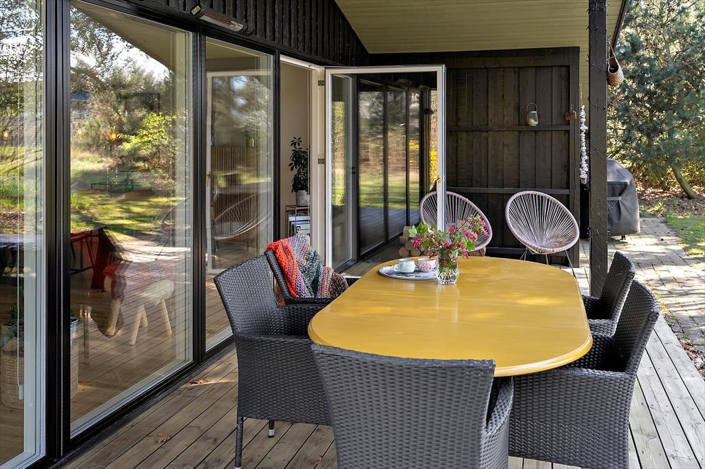 Den store, solrige terrasse er oplagt til ferie under åben himmel her kan I grille på gasgrillen, nyde dagens måltider eller bare læne jer tilbage med en god bog. Haven omkring huset er både grøn og indbydende, og et skønt område med solsejl giver behagelig skygge, når solen står højt. Efter en tur til stranden er det en fornøjelse at skylle sandet af under den udendørs bruser med varmt vand en luksuriøs detalje, der emmer af sommer og frihed.