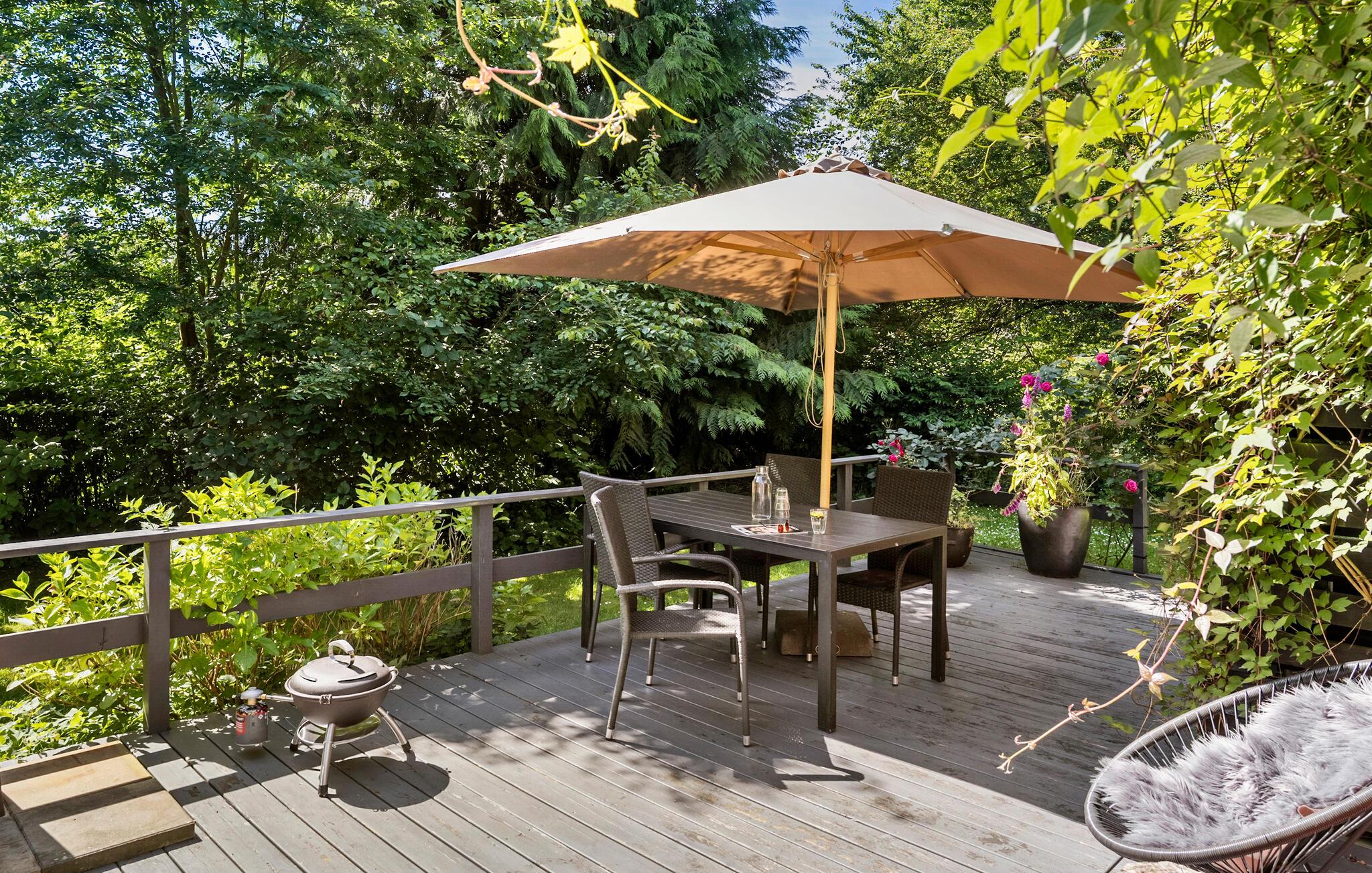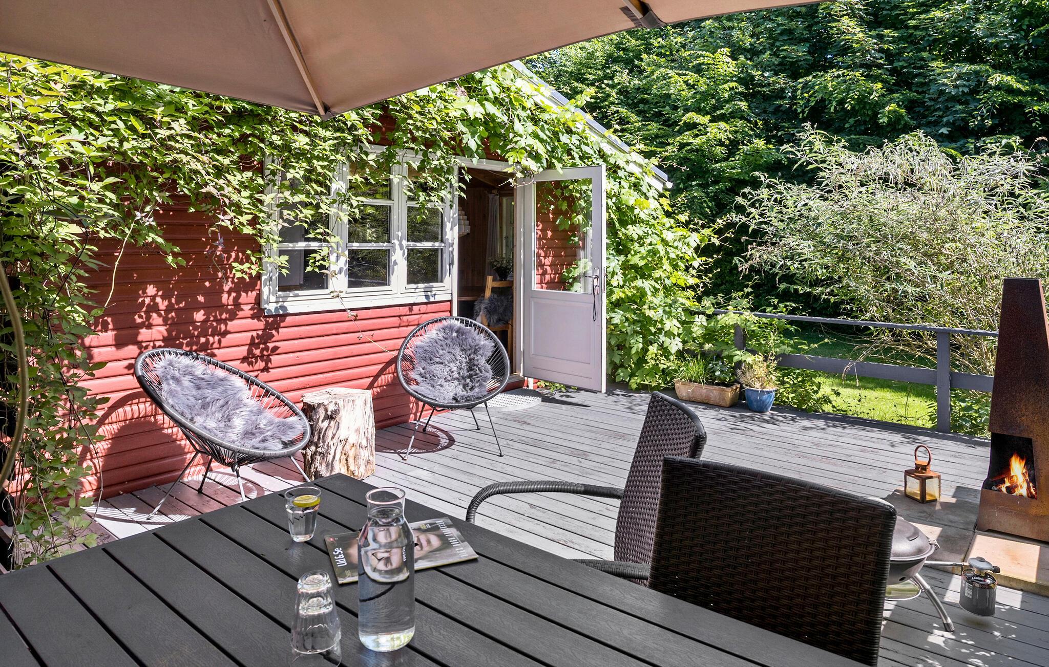 Charmerende feriehus på Samsø med hyggelig terrasse og moderne faciliteter, perfekt til afslapning og oplevelser i naturskønne omgivelser.