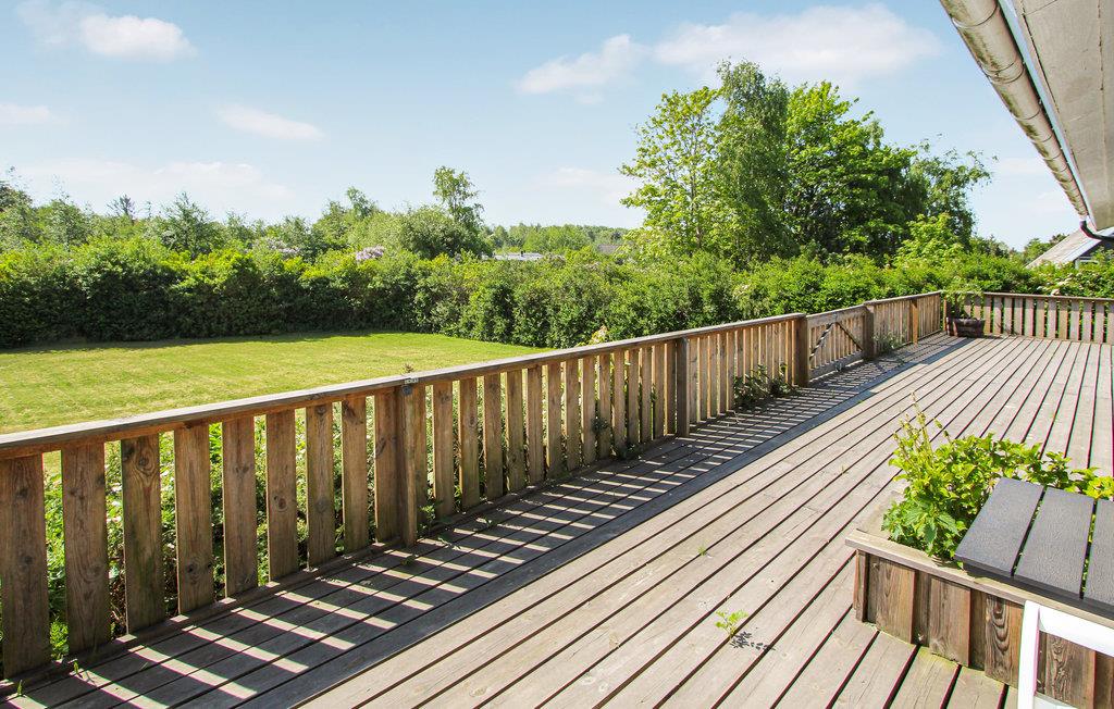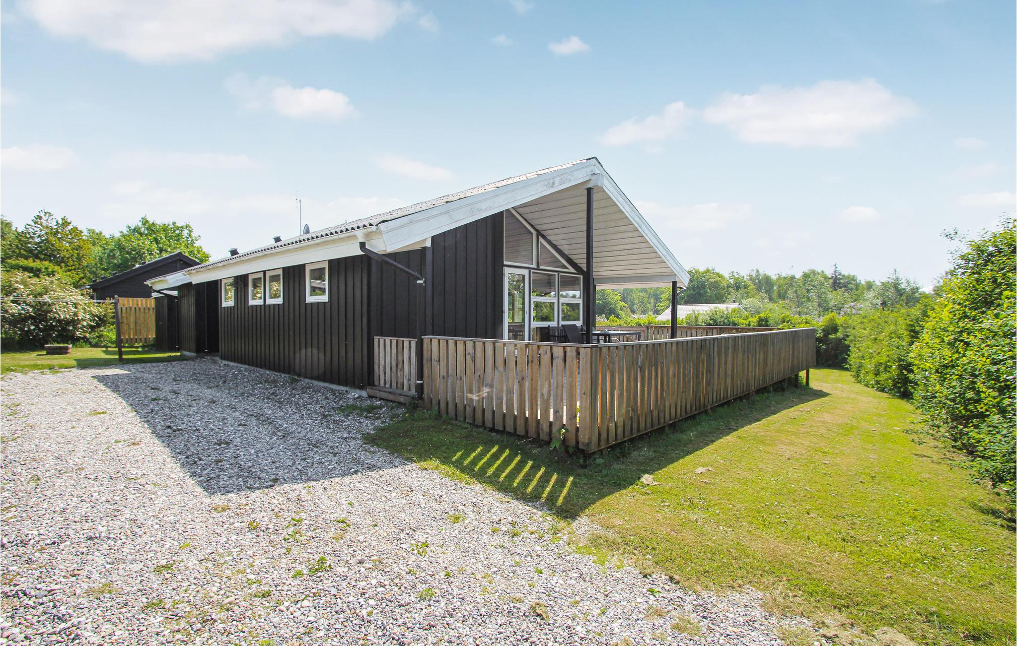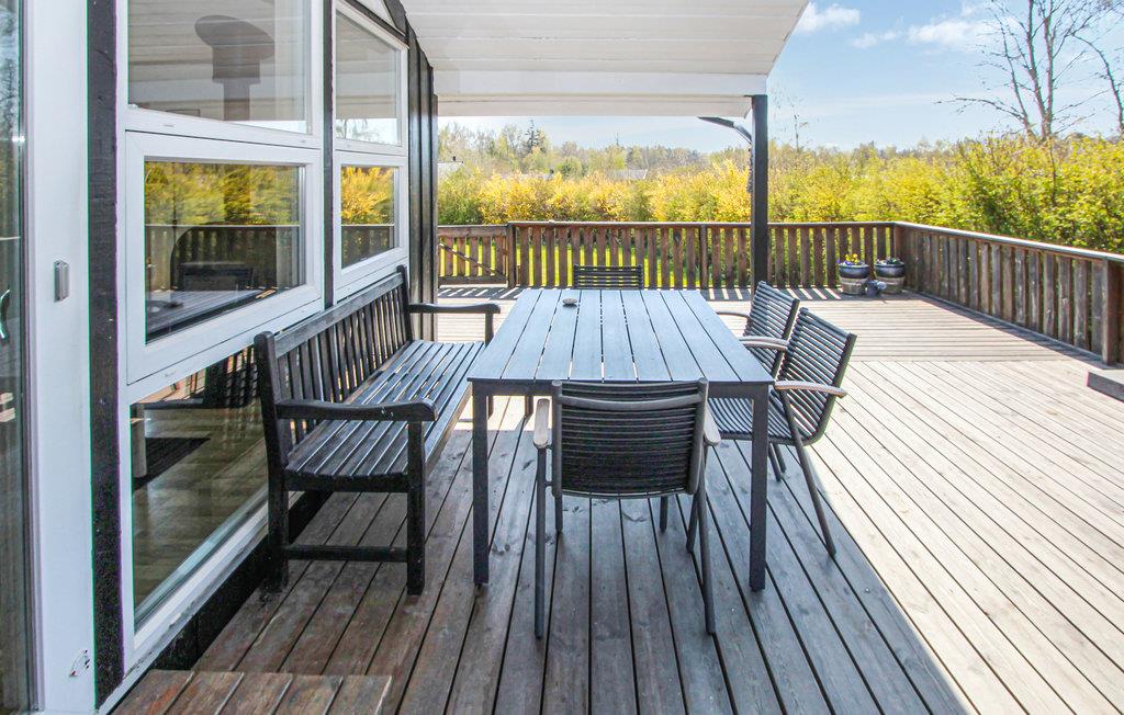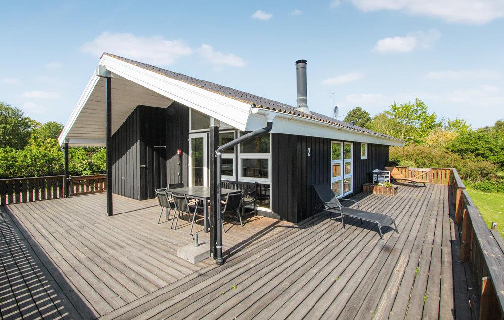 Træd direkte fra stuen ud på den rummelige terrasse, hvor komfortable liggestole indbyder til afslappende stunder med solbadning. Kun få skridt fører jer til en god badestrand, hvor I kan nyde havet og solen.