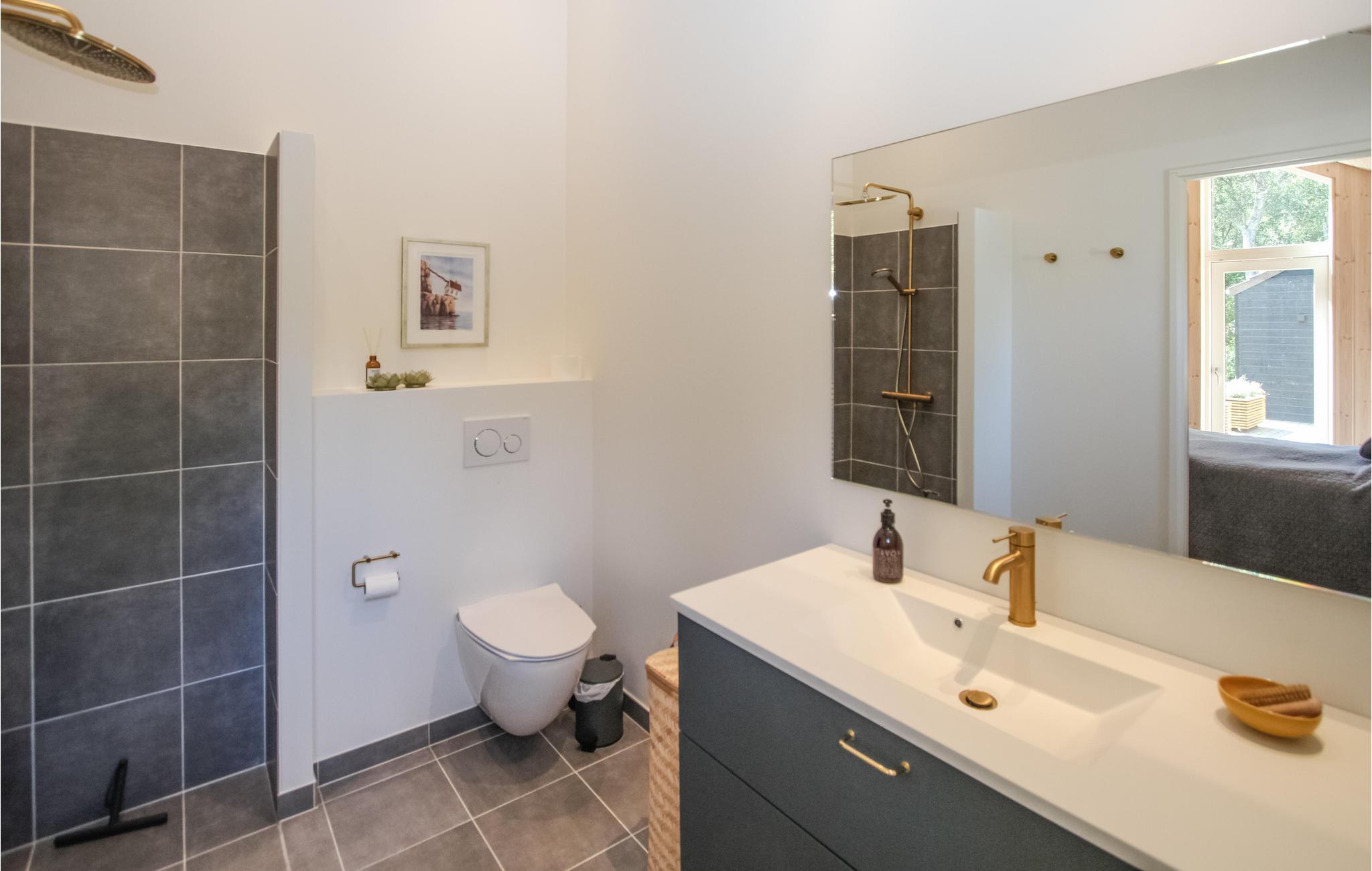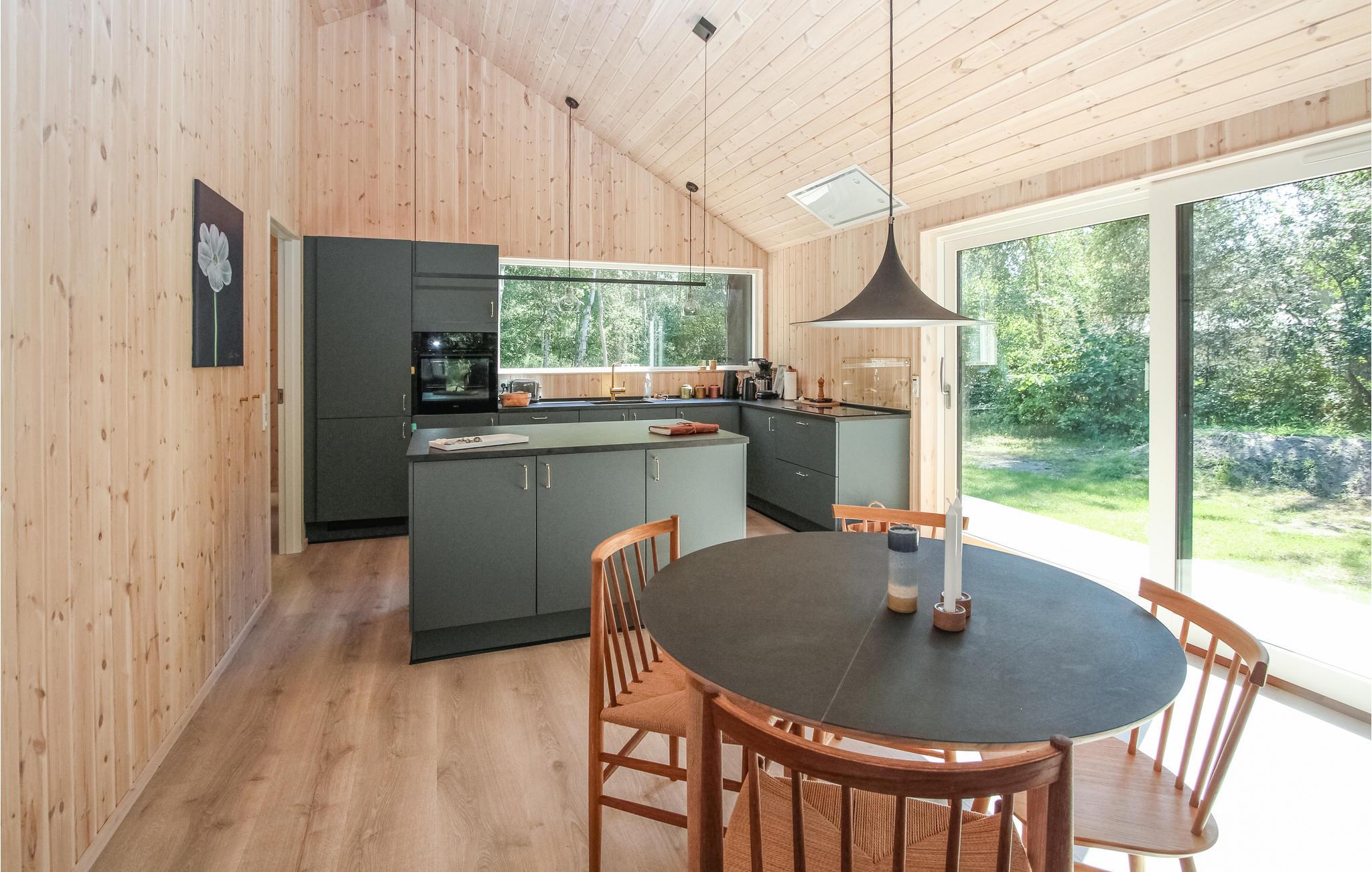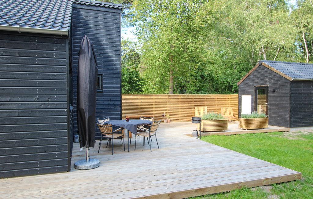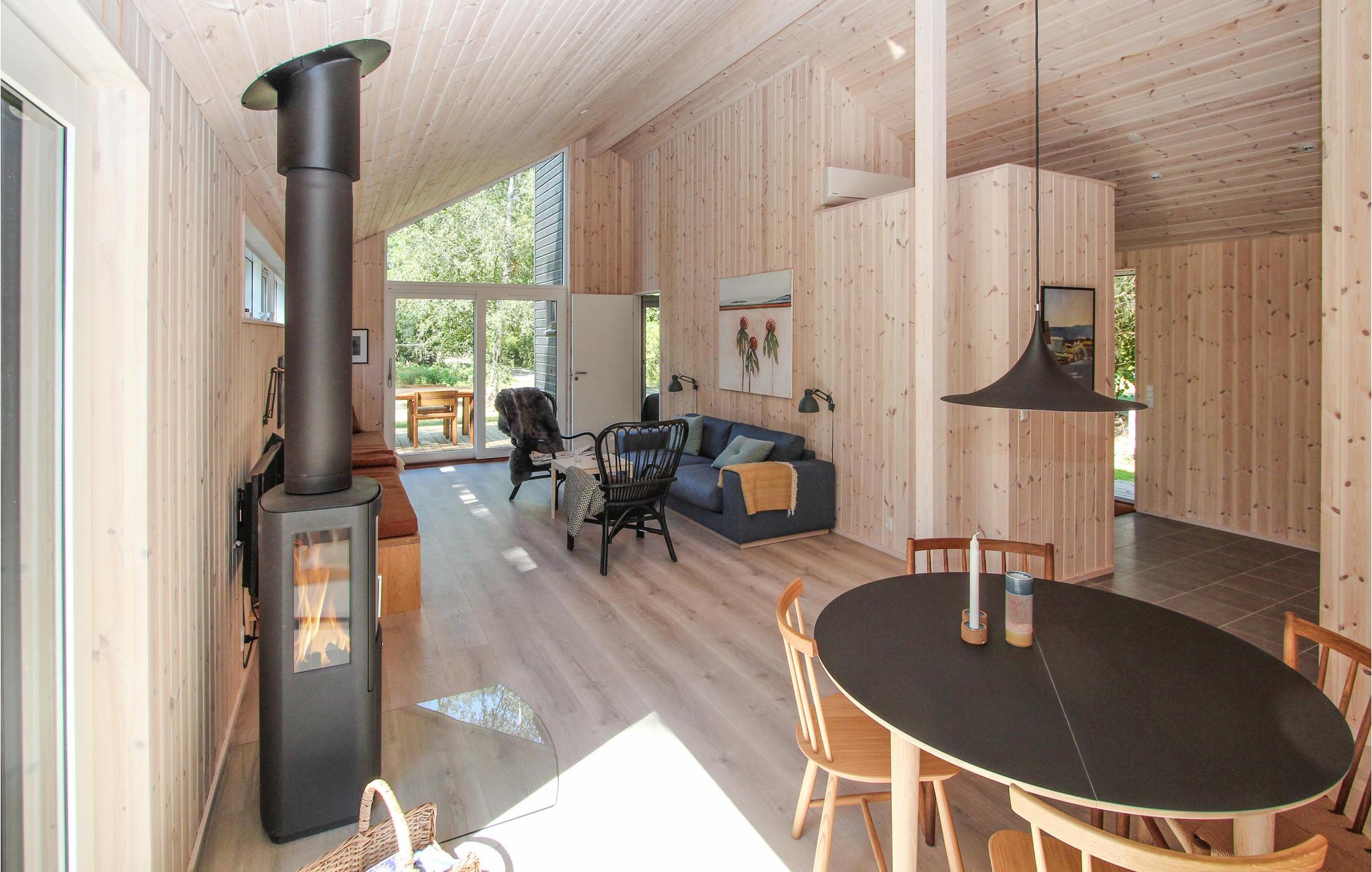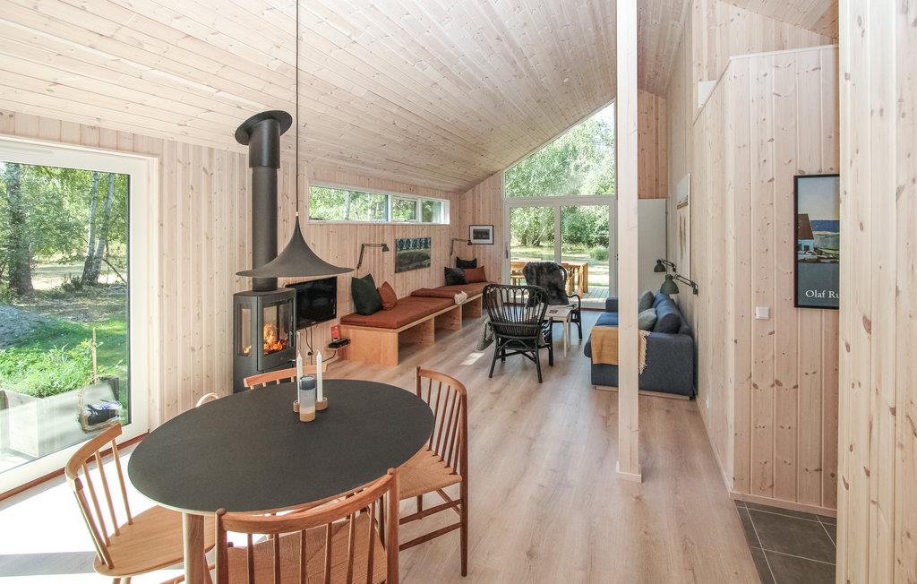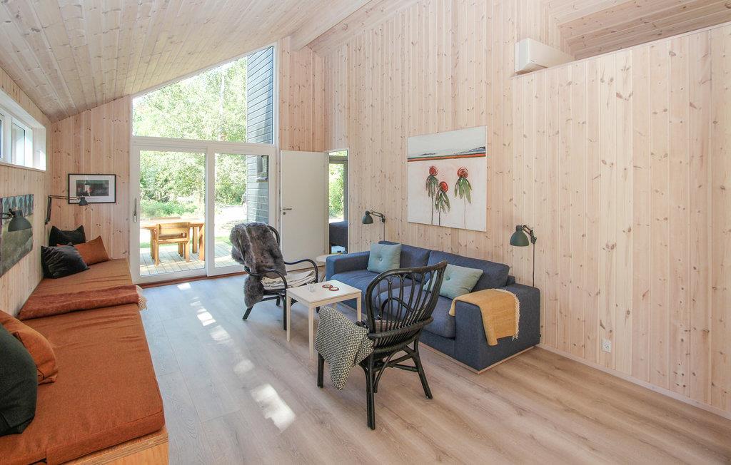 Slap af i dette moderne og smagfuldt indrettede hus og læg jeres hektiske hverdag bag jer. De smart placerede vinduer lukker masser af lys ind i værelserne og giver jer en fantastisk udsigt over det omkringliggende grønne område. Sæt jer godt til rette sammen i opholdsstuen, tænd op i brændeovnen og snak til sent på aftenen, mens flammerne knitrer hyggeligt. Her kan I også spise udenfor, nyde et solbad eller tage den koret gåtur til stranden.