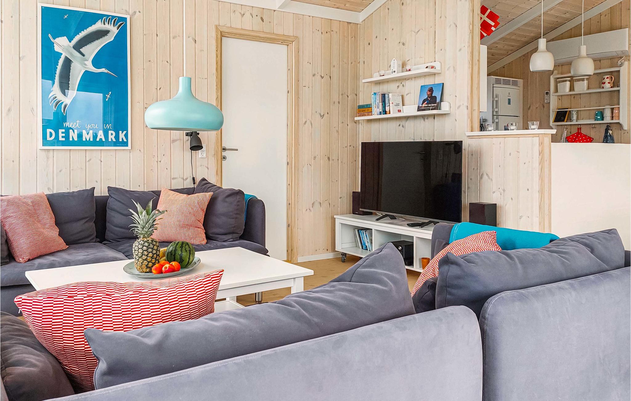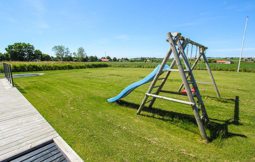 Om det er madlavning sammen, udvidede måltider eller blot afslapning på sofaen - det hele foregår her med en smuk baggrund af grønne marker og frodige enge, som I kan beundre gennem store panoramavinduer. Tænd op i brændeovnen om aftenen og gør det behageligt for jer selv. I kan nyde udsigten i fulde drag over eftermiddagskaffe på terrassen, hvor I sidder i læ for vinden, inden I begiver jer ud på den korte gåtur til stranden.