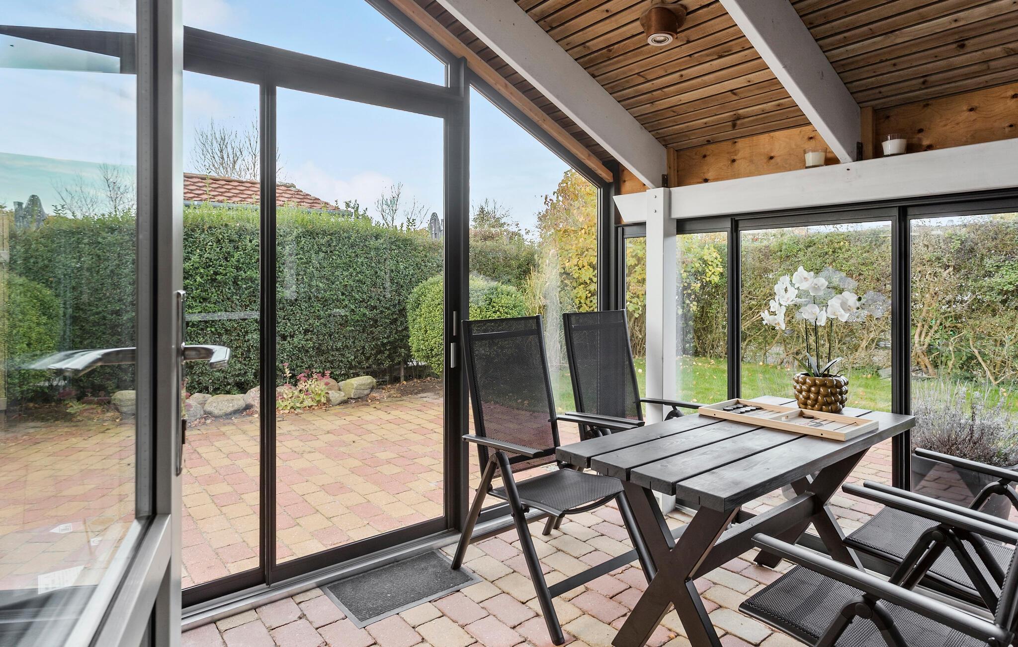 Der er kun en lille gåtur ned til stranden fra dette herlige hus, hvor I kan se frem til nogle fredfyldte feriedage. Det åbne opholdsområde har lyse trævægge og et dejligt lysindfald fra vinduerne, så her er det nemt at koble af. Tilbring hyggelige aftener i siddeområdet med film, brætspil og gode bøger. I udestuen kan I sætte jer med en lun kop te og kigge ud på haven i al slags vejr. Det moderne køkken giver jer gode rammer til at gøre madlavningen til et hyggeligt fællesprojekt.