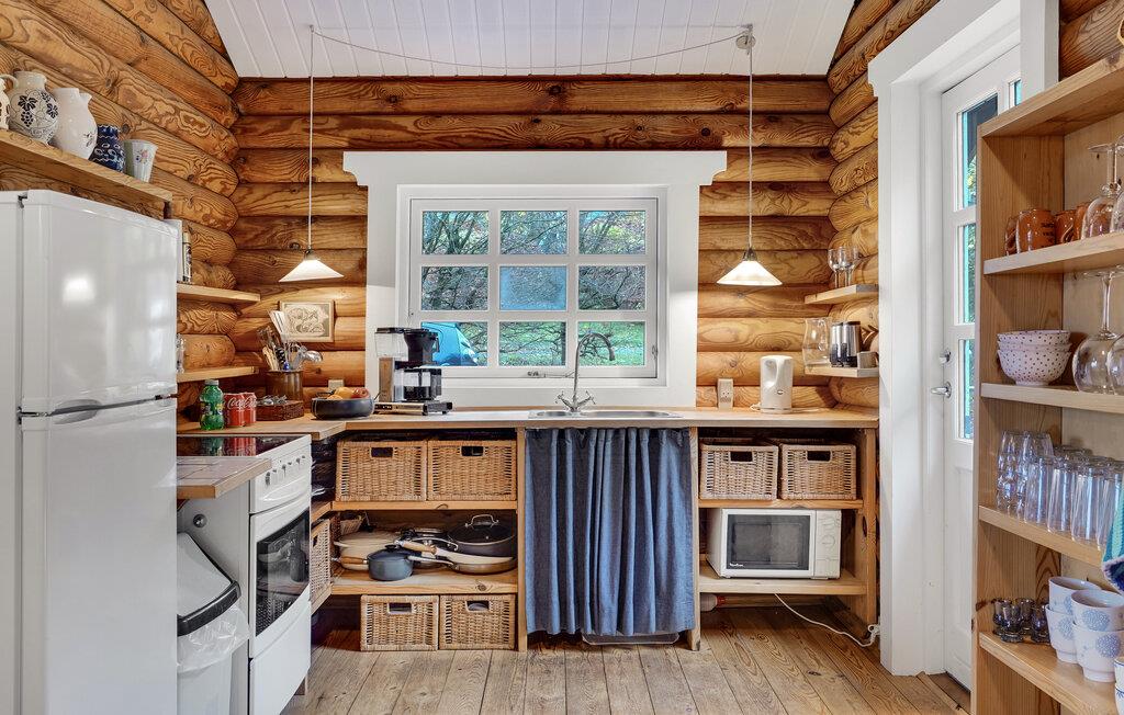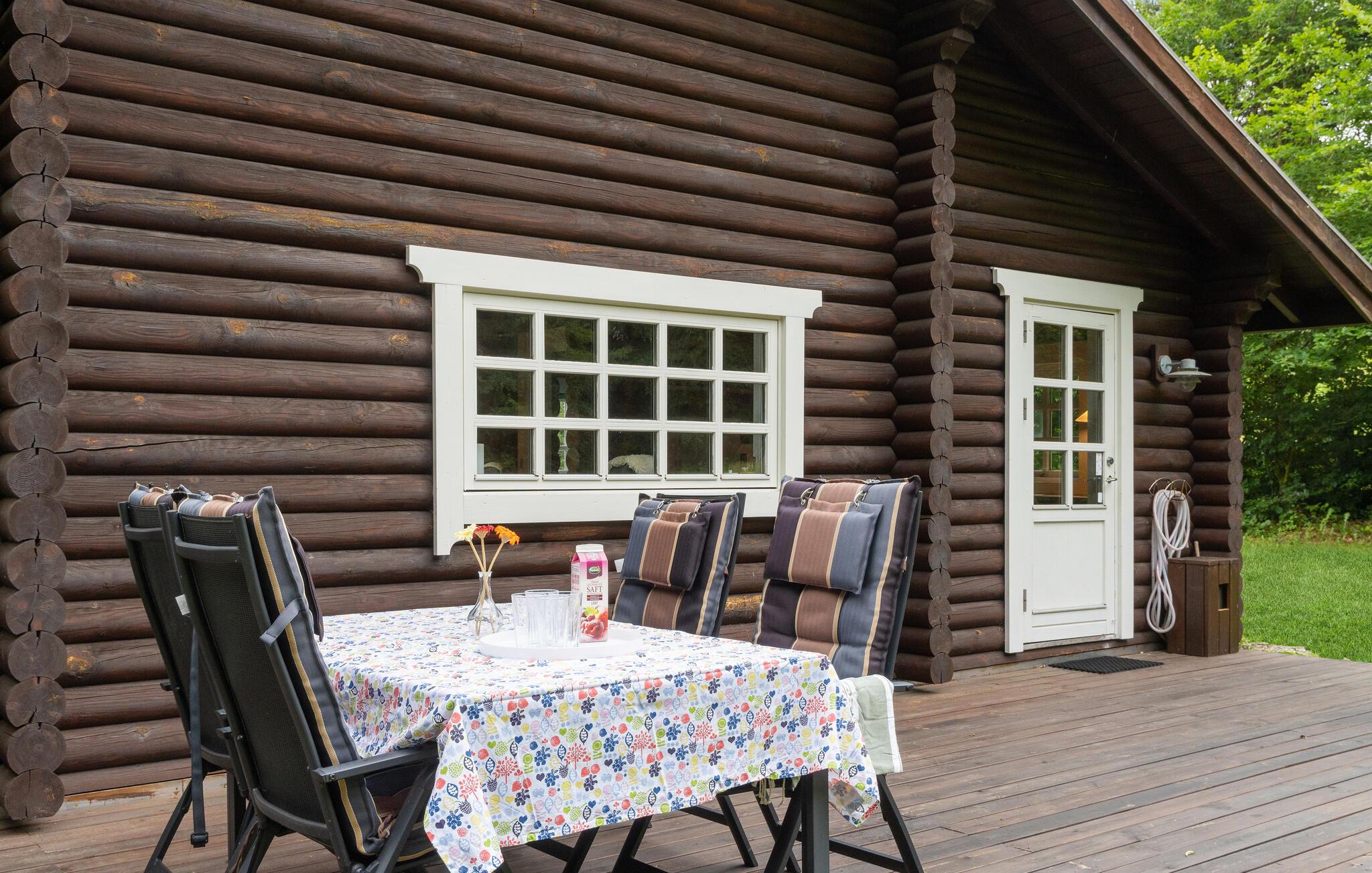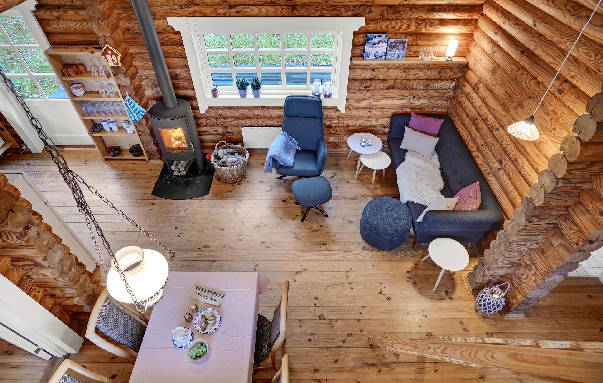 Velkommen til denne kompakte og hyggelige feriehytte. Her kan I finde jer tilpas i bjælkehyttecharmen sammen med jeres lille familie. Spil brætspil sammen, læs en god bog eller se stjernerne på nattehimlen. Om morgenen kan I nyde jeres morgenmad på terrassen, mens I om aftenen spiser jeres yndlings grillretter med udsigt over fjorden.