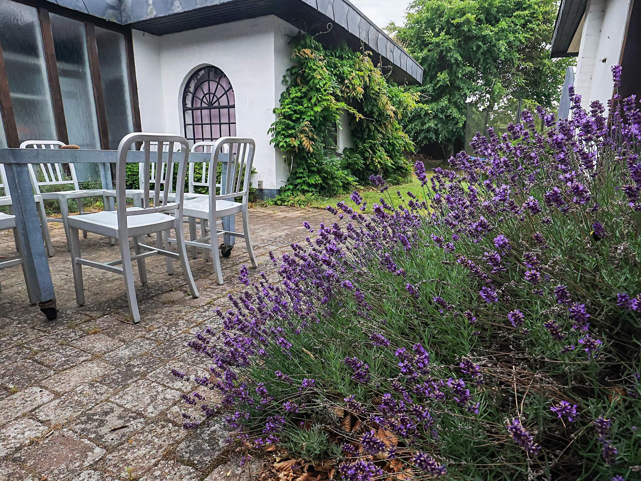 Udendørs på den 2200 m2 naturskønne grund er der stor flisebelagt gårdsplads med adskillige sol og hyggekroge, havemøbler, markise og stor grill. Hyggeligt bålsted med grill til voksne og børn. Til de mindste er der gynger, sandkasse, legehus og legetårn med rutschebane fra det danske legeredskabs firma Kompan. Ydermere findes der bordtennis og trampolin (trampolinen benyttes på eget ansvar/forsikring).