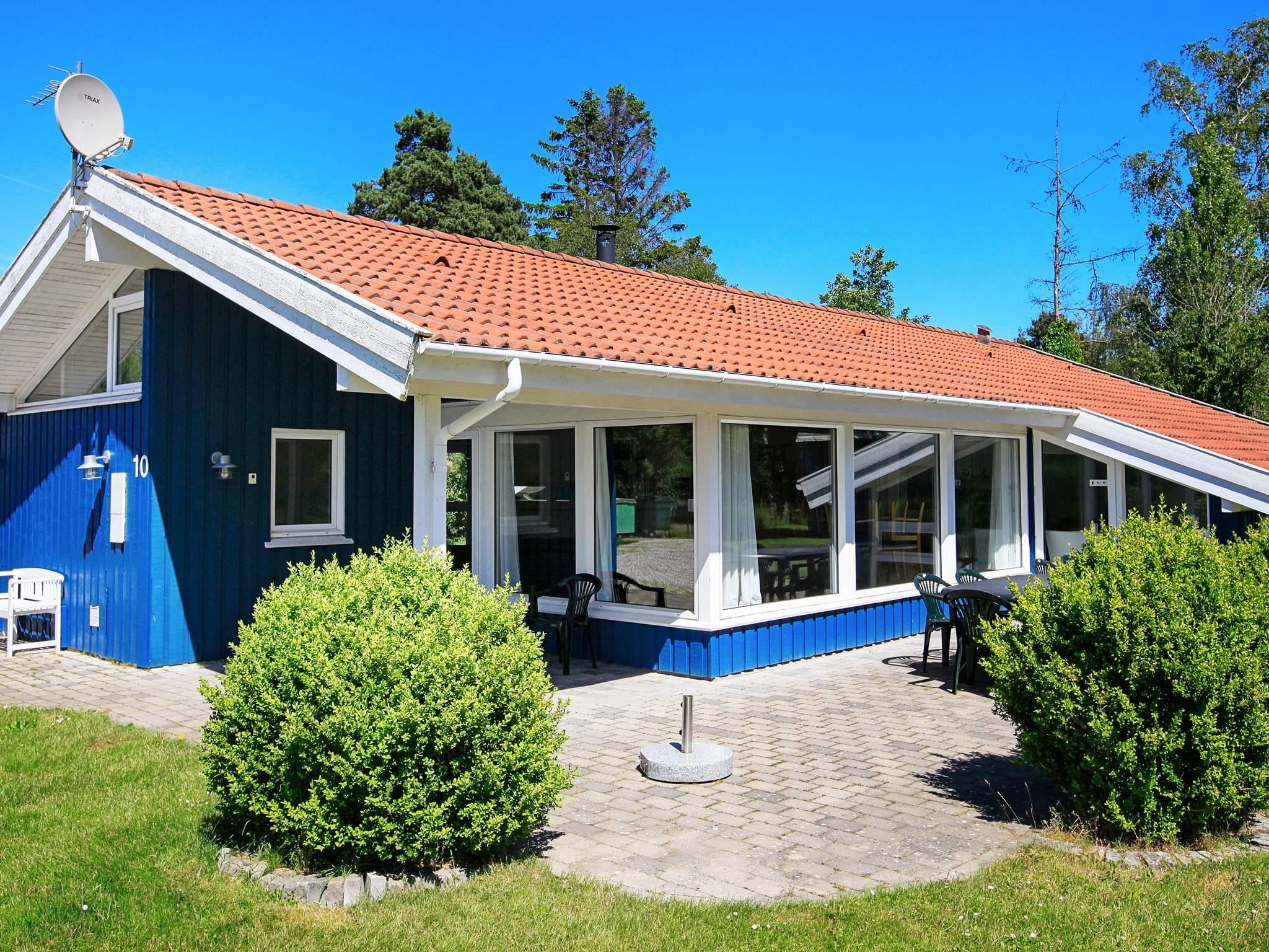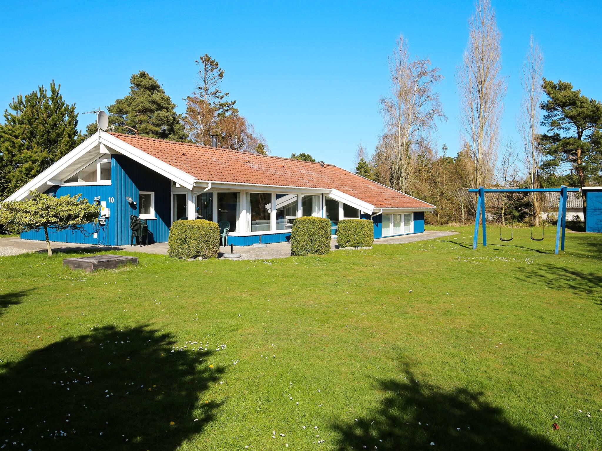 Huset har en stor terrasse, der er perfekt til afslapning og grillning. På plænen kan du solbade eller nyde spil og leg, hvor der også er noget for de små feriegæster i form af en sandkasse og en gynge.
